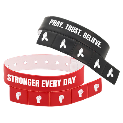 Vibrantly displays custom messages with their sleek, colorful, and comprehensive look. Long lasting, stretchable, water-resistant, and produced from medical grade silicone.
