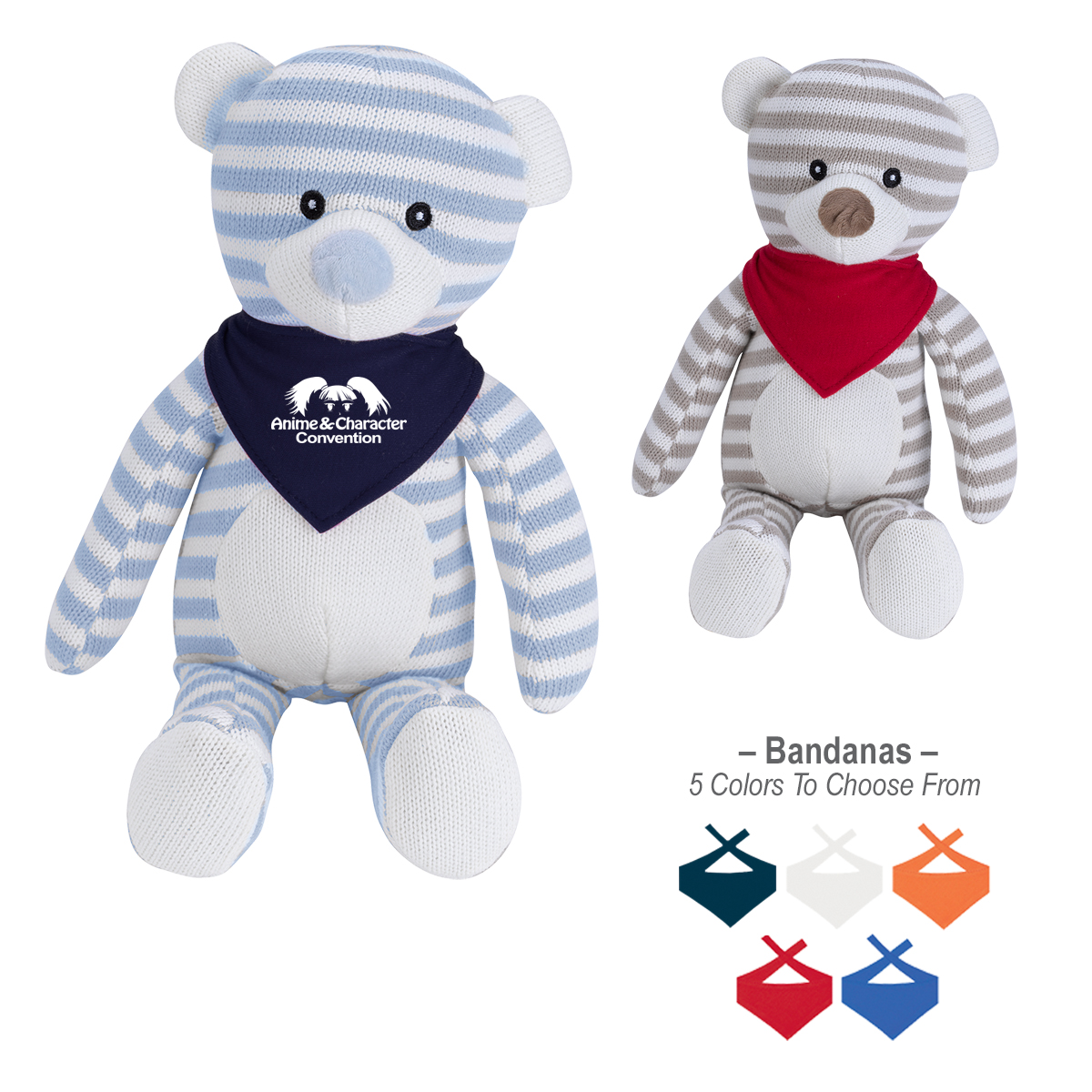 Bear: Blue or Tan, Both with White. Bandanas: Navy, Orange, Red, Royal Blue or White. (Must Specify On Order)