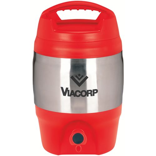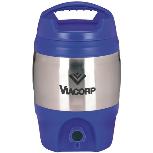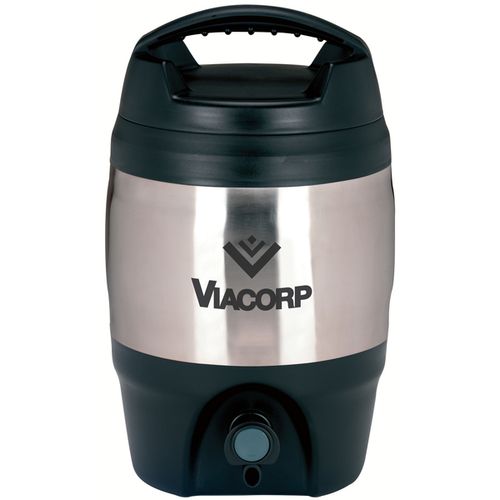 • Heavy-duty stainless steel and plastic exterior with easy spout release.
