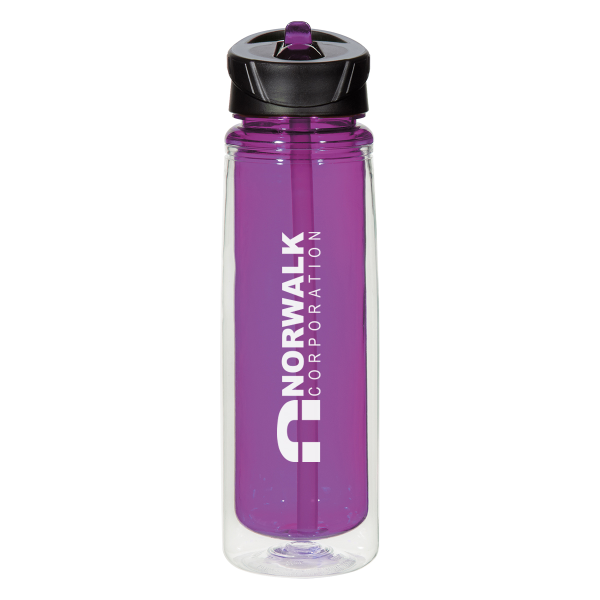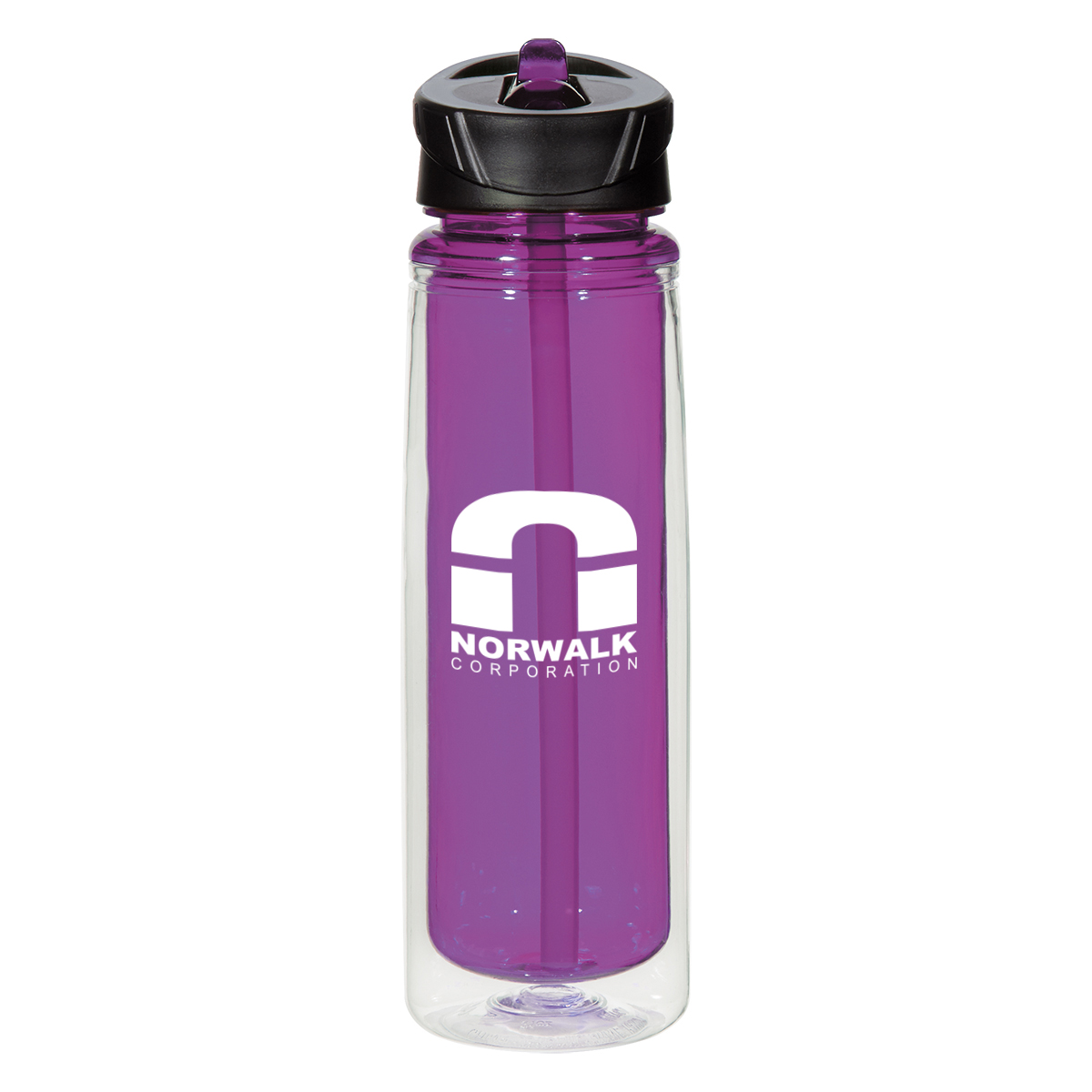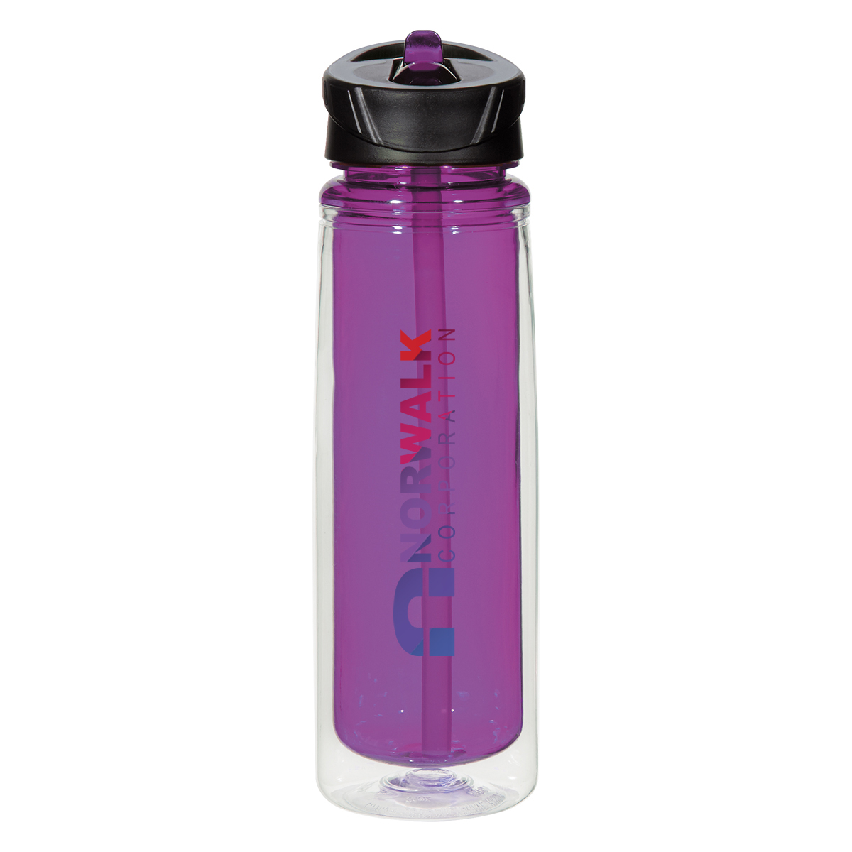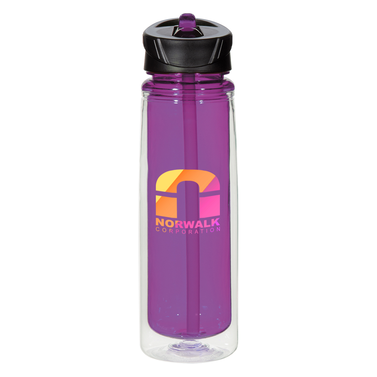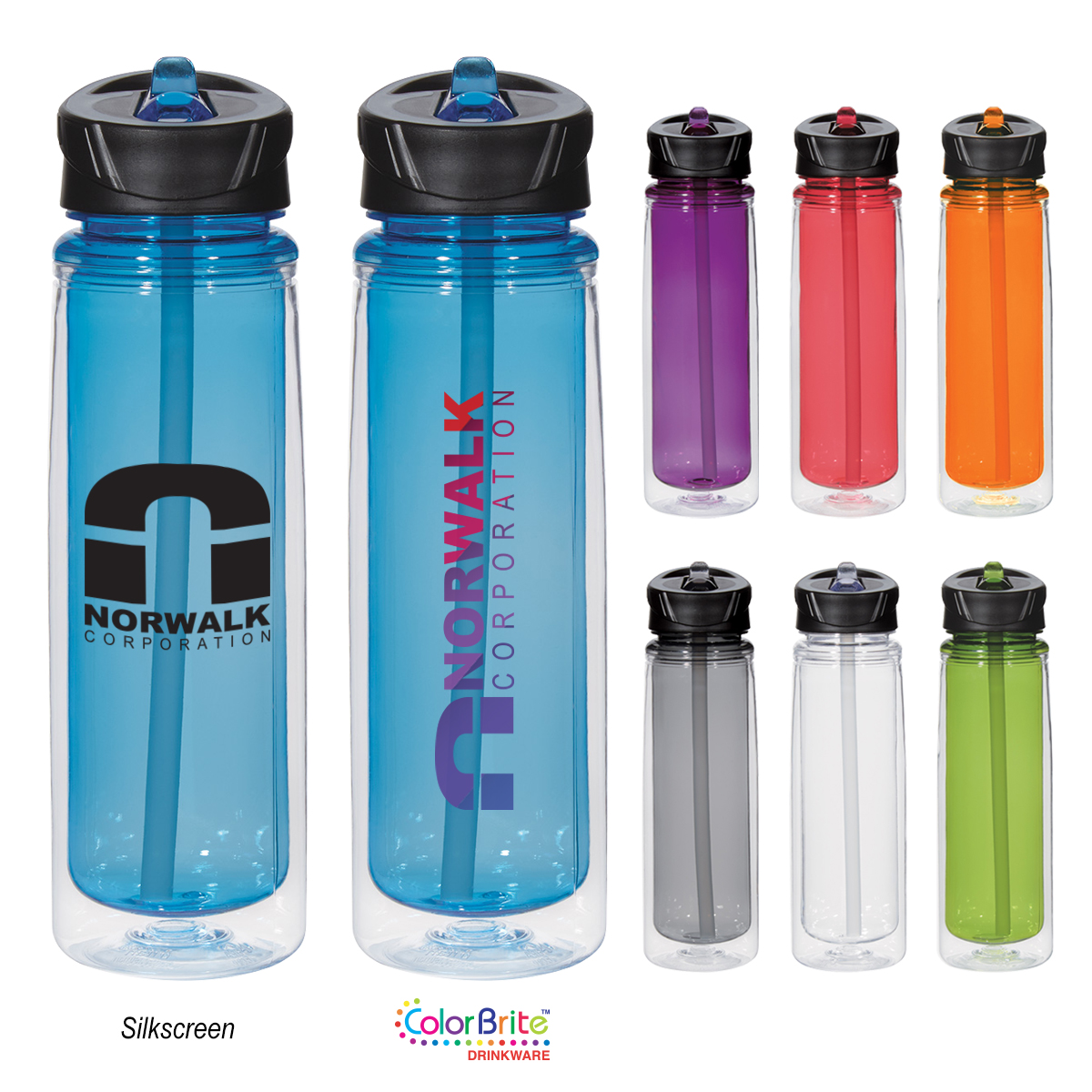 Clear Outer with Clear Inner and Sipper. Clear Outer with Translucent: Black, Blue, Lime Green, Orange, Purple or Red Inner and Sipper.
