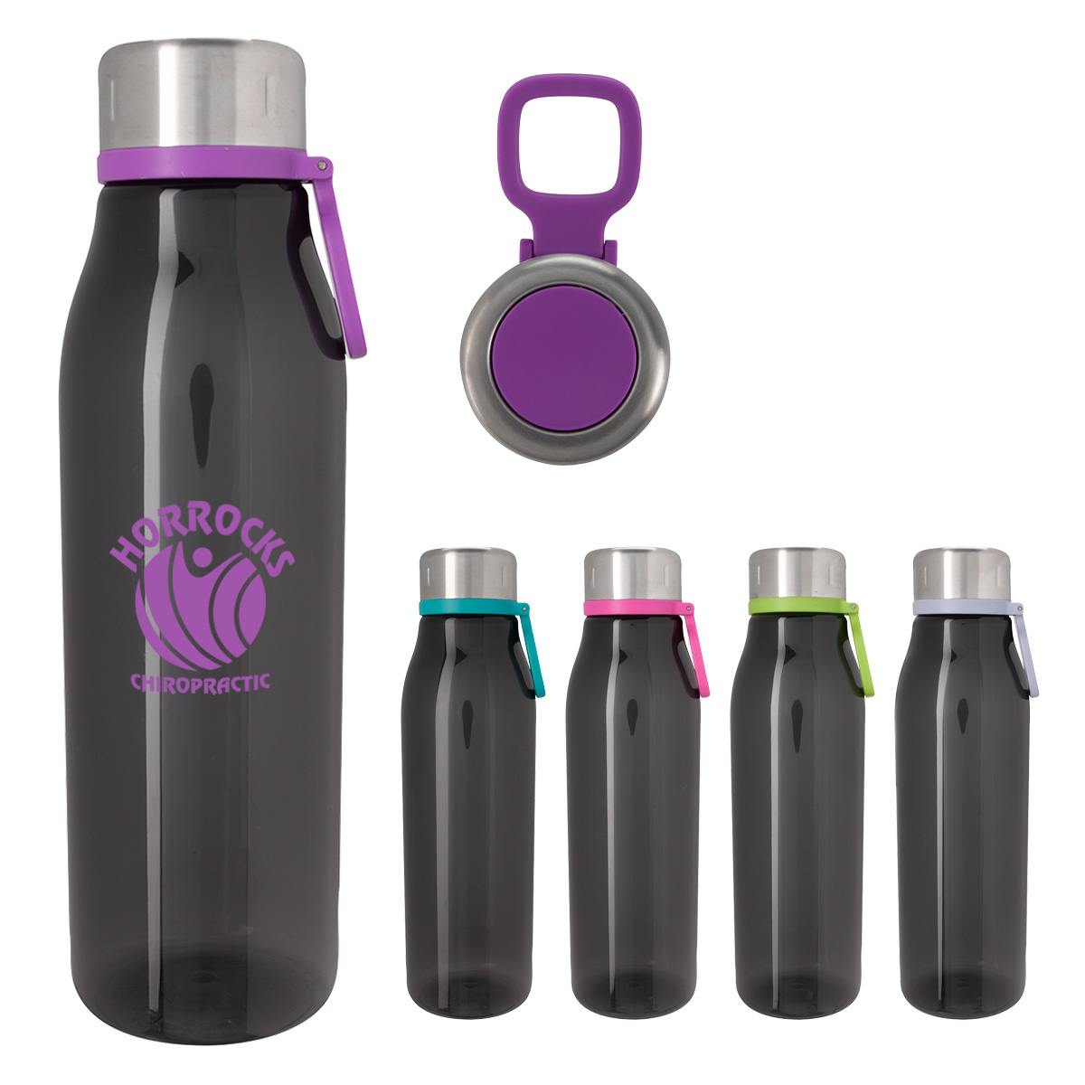 Translucent: Charcoal with Fuchsia, Gray, Green, Purple or Teal Lid.