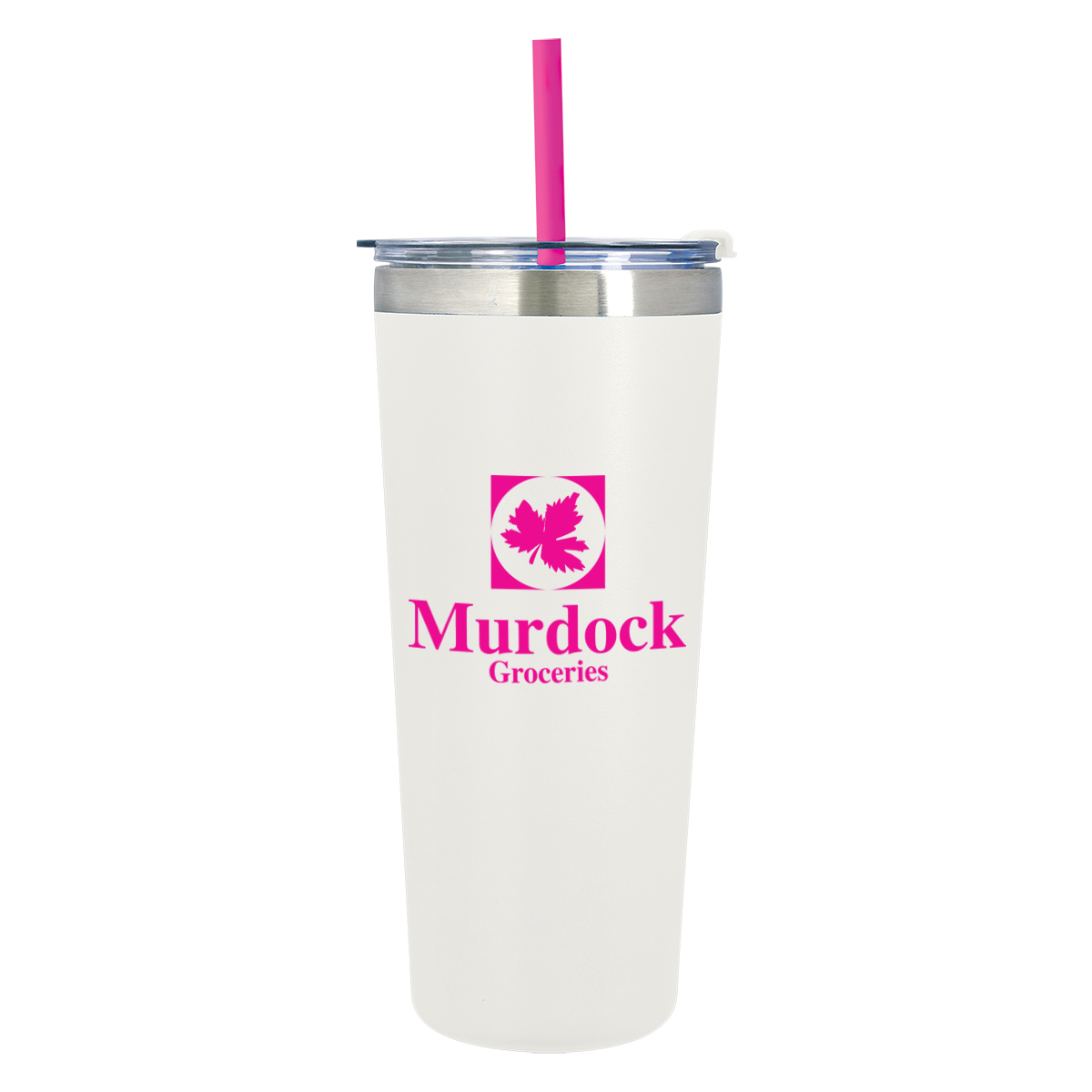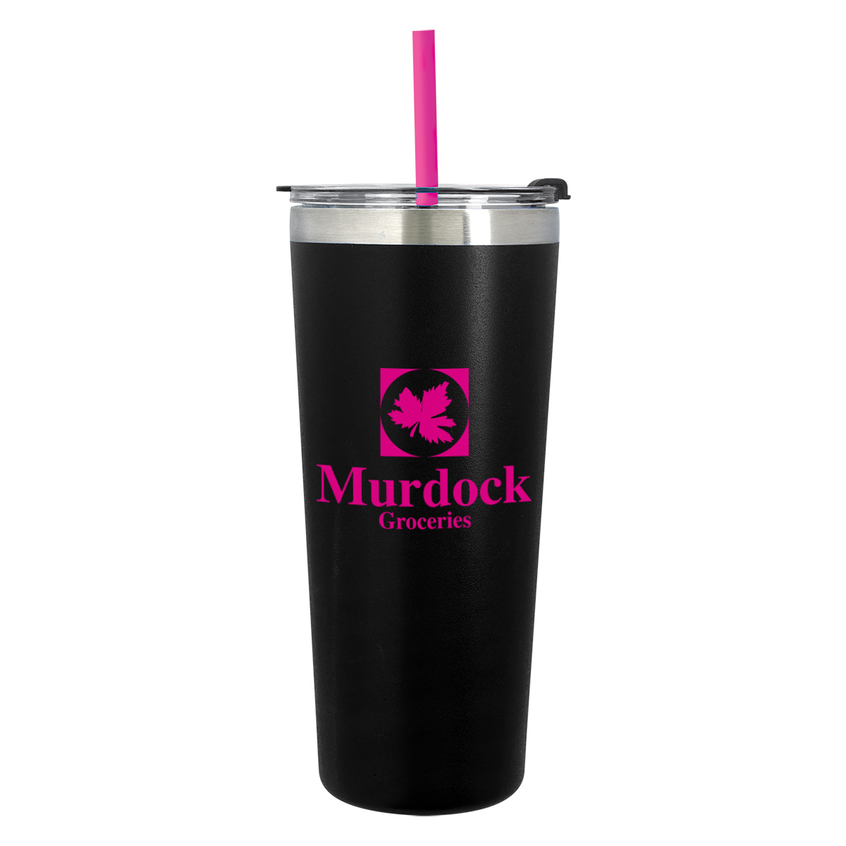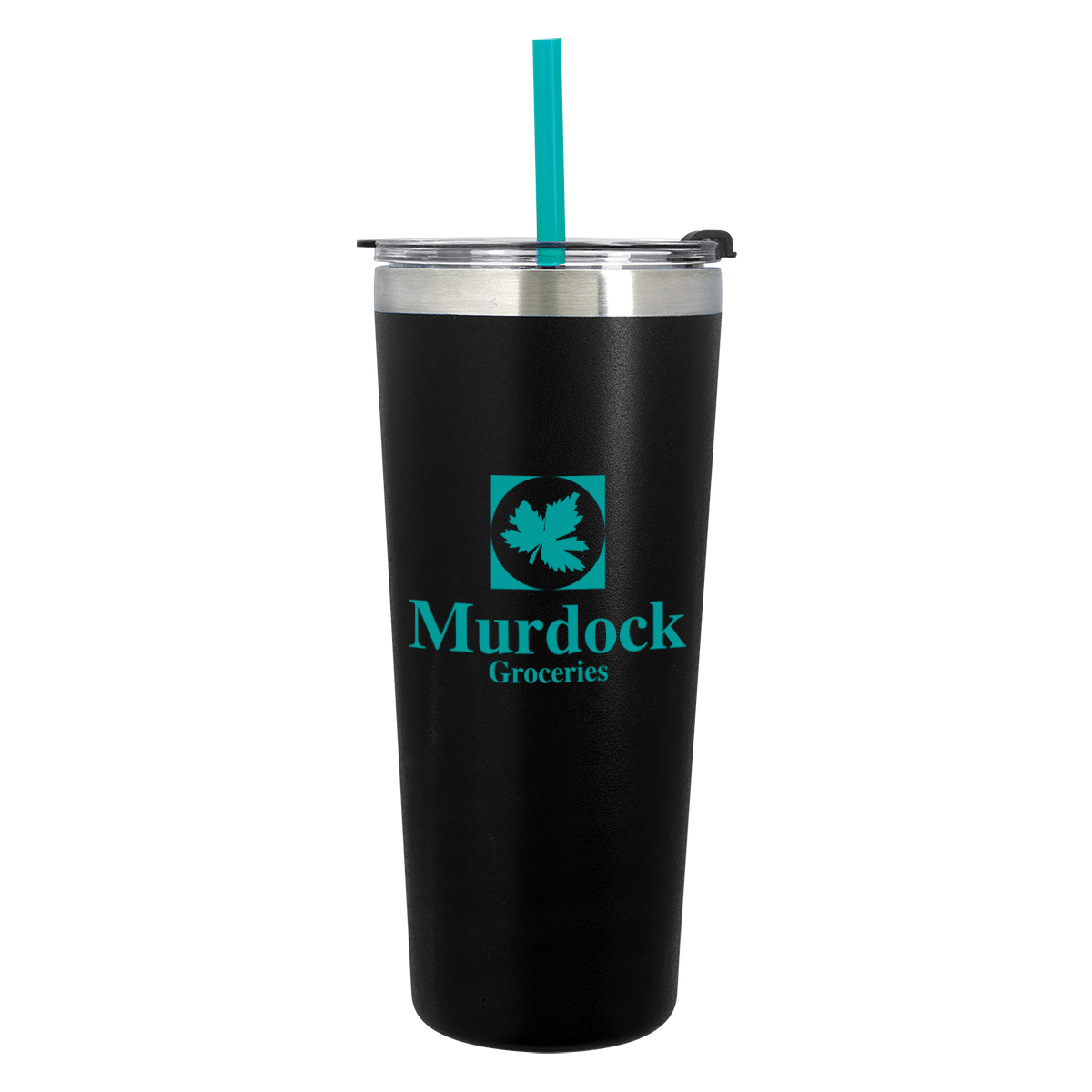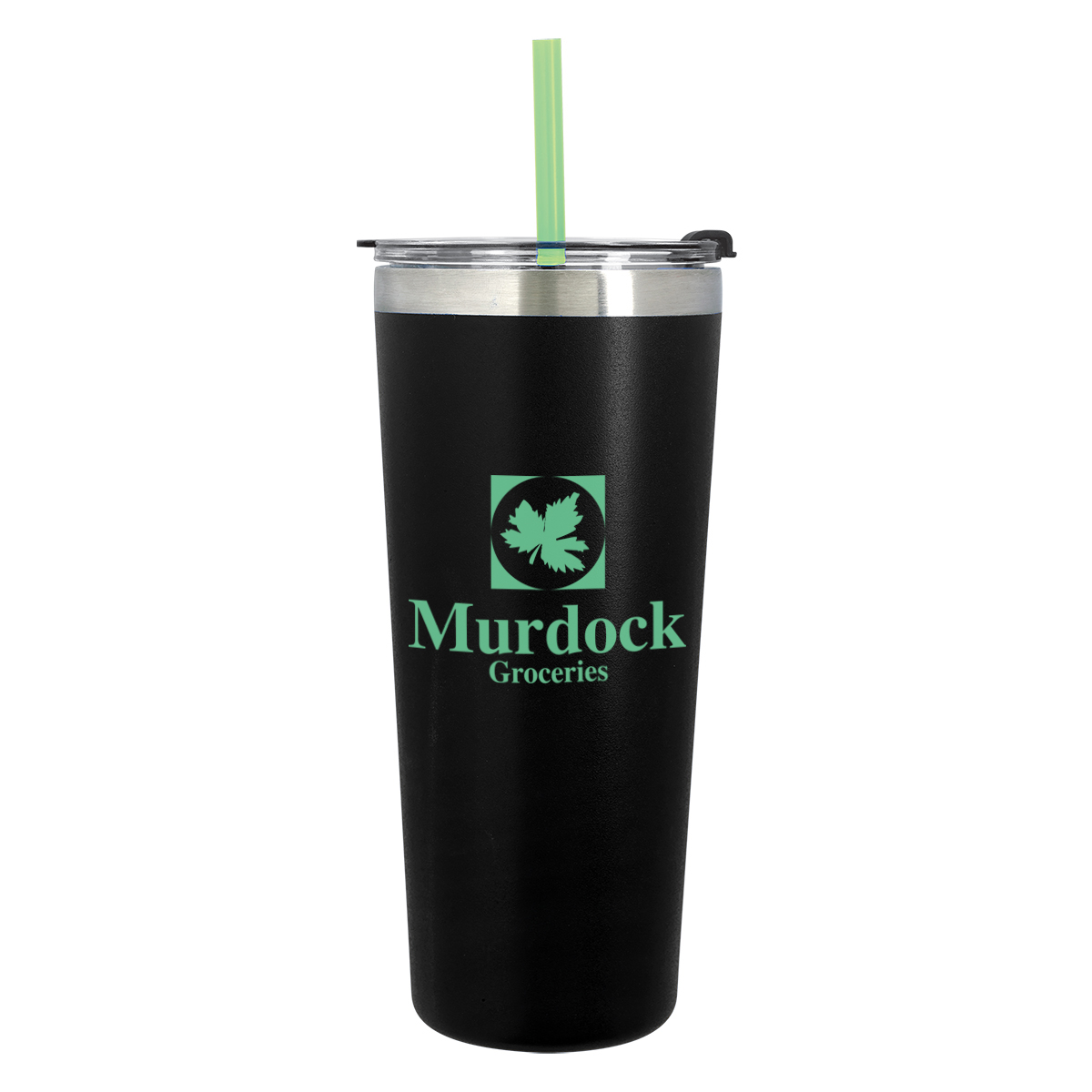 Black Tumbler with Mint, Teal, Red, Orange, Blue, Fuchsia, Lime Green or White Straw, all with Clear Lid and Black Flip-Top Accent. White Tumbler with Mint, Teal, Red, Orange, Blue, Black, Fuchsia or Lime Green Straw, all with Clear Lid and White Flip-Top Accent.