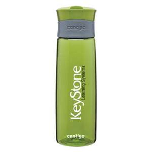 • 24 oz Contigo AutoSeal Hydration Titan copolyester bottle with carrying loop and push button opening.