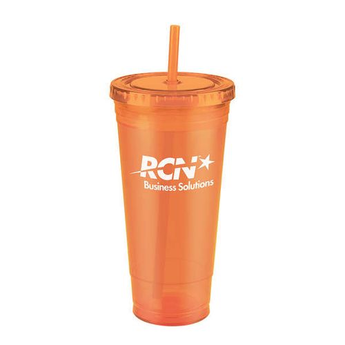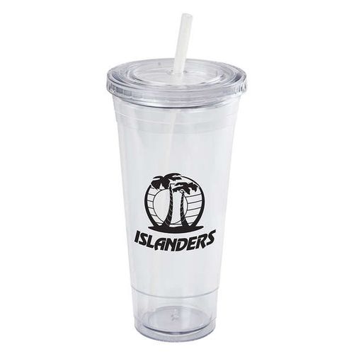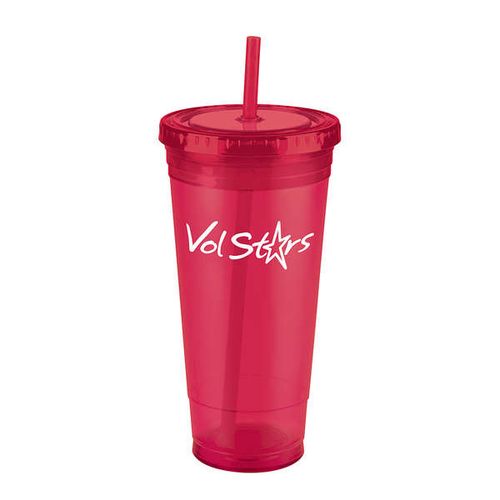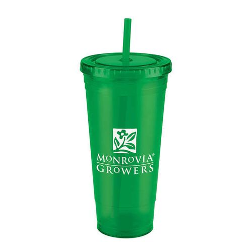 • Double wall acrylic cup with matching color screw-top lid and sip-straw, BPA free, Not microwave or dishwasher safe.