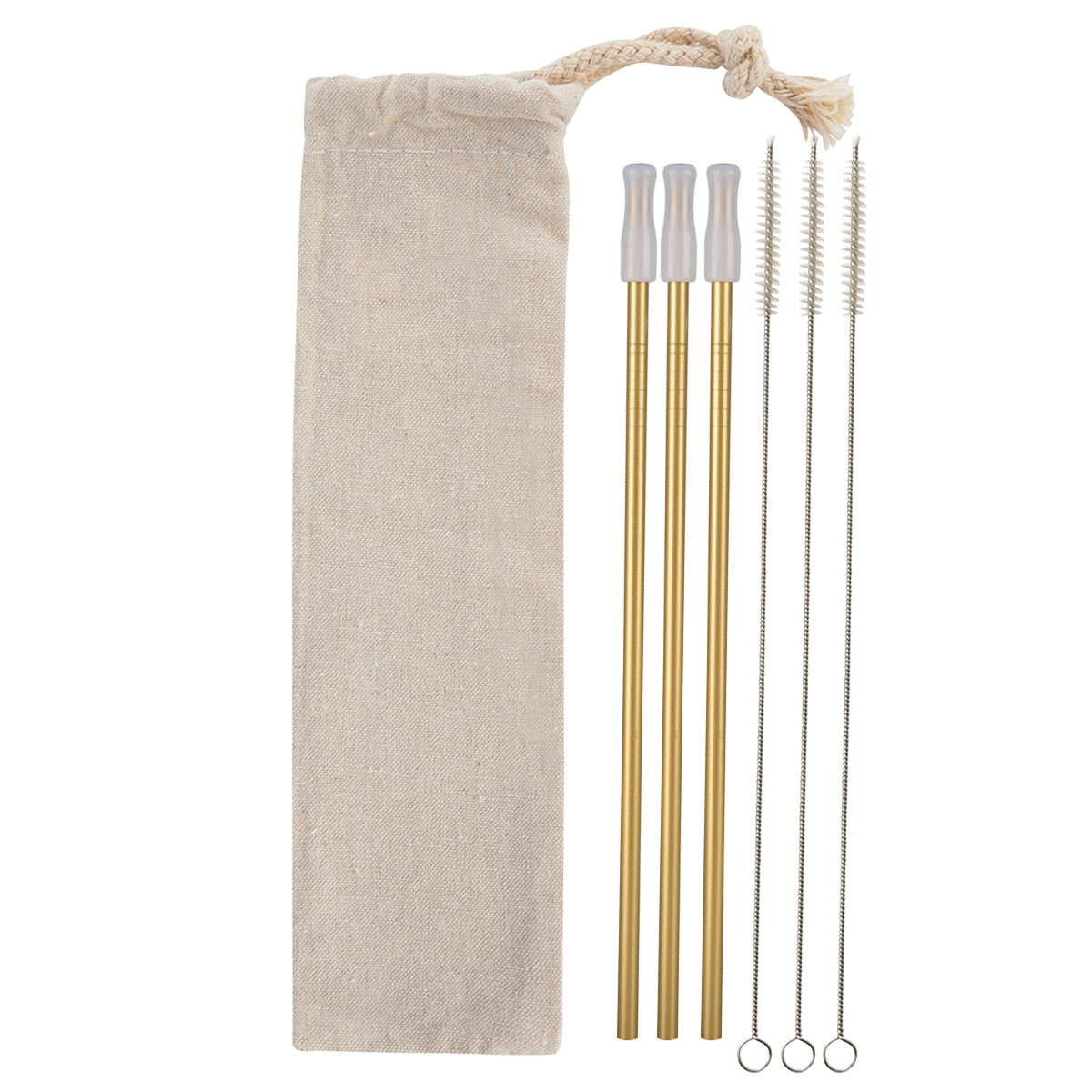 Straw: Gold, Rainbow or Rose Gold, all with Clear Tip Pouch: Natural
