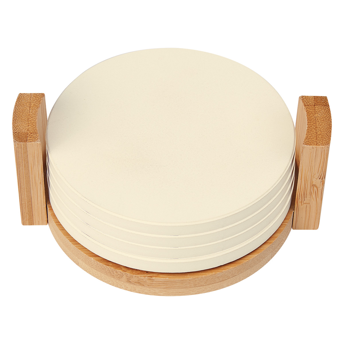 Natural Holder with White Coasters.