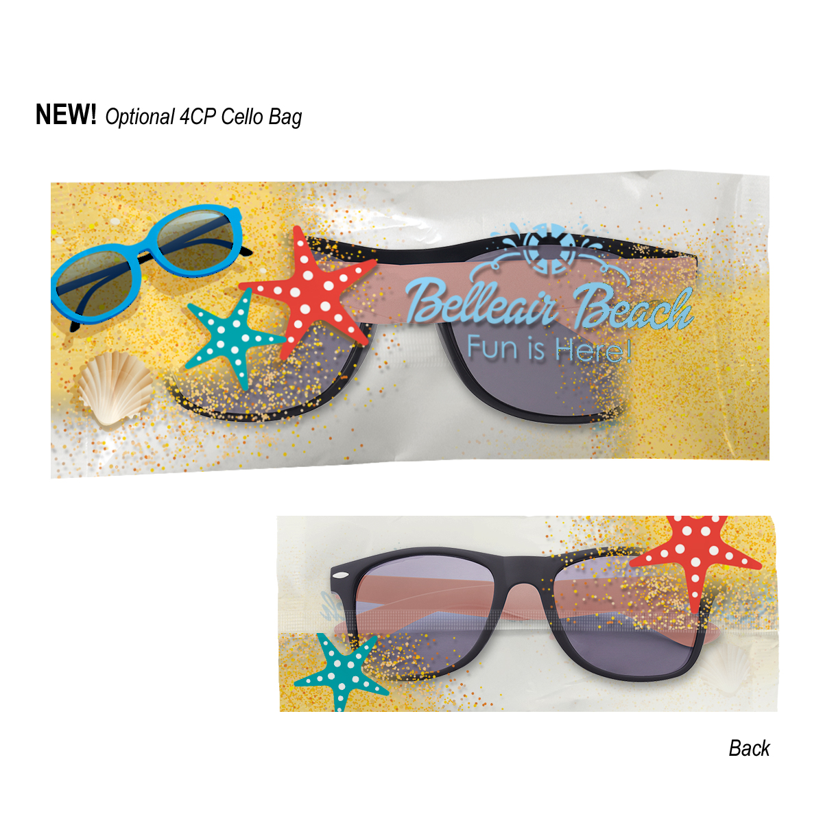 4CP Cello Bag: Add $50.00(G) set up charge plus .30(G) per piece. 4-color process on a white or clear cello bag. Must specify white or clear #4CPCELLO on PO. Choose from one of our stock designs or create your own custom design! 250 piece minimum. Production time for 4-Color Process Cello Bag is 5 to 7 days after proof approval.