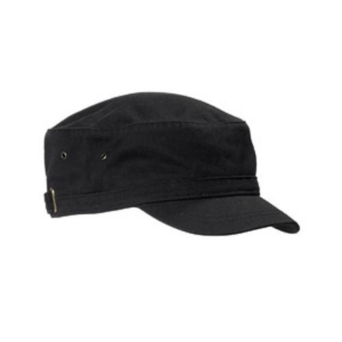 • Military style, unstructured hat with precurved bill, side brass eyelets, and self-fabric closure.