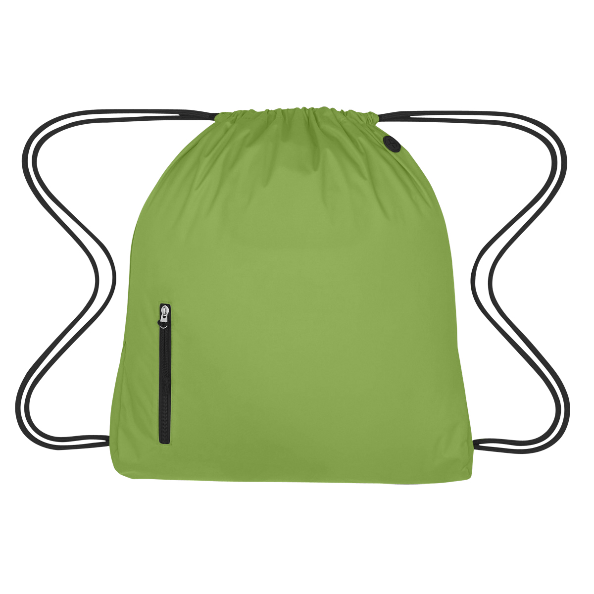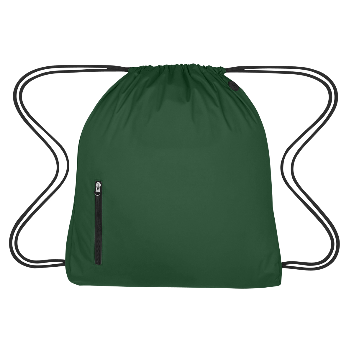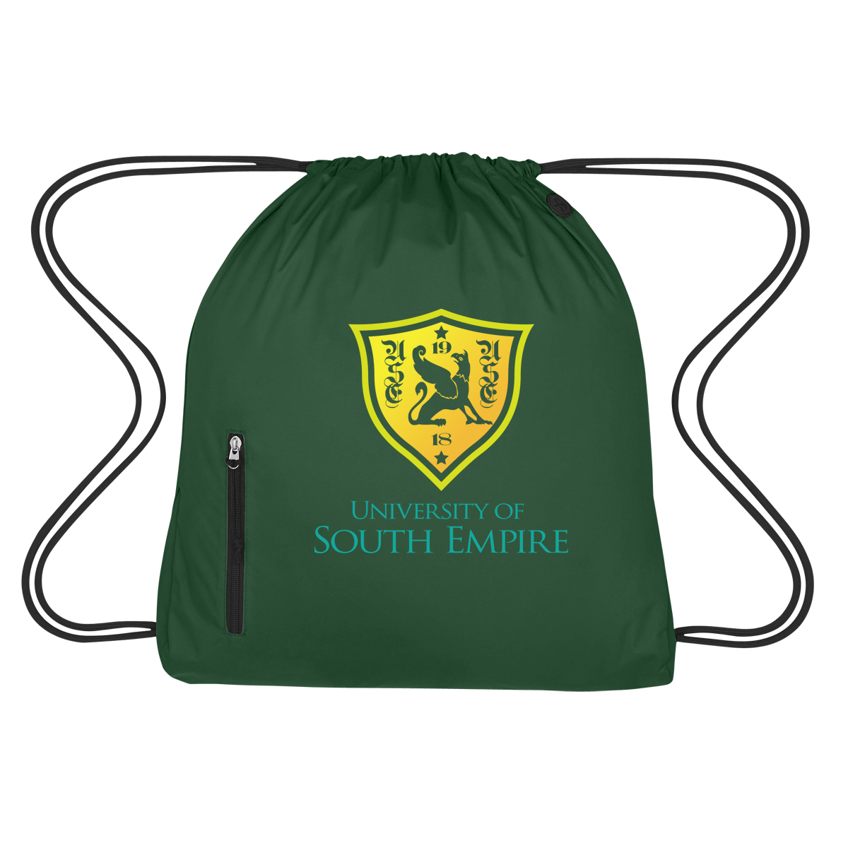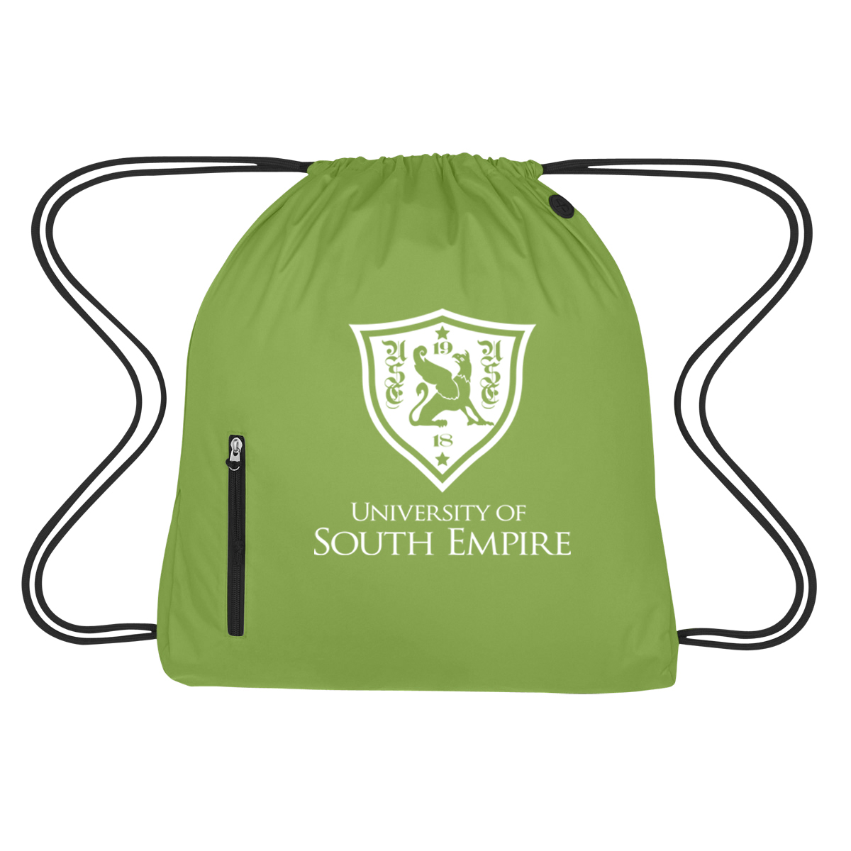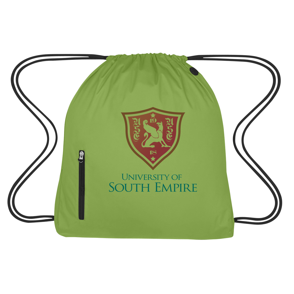 Imprint is centered between the zipper and right side of the bag.