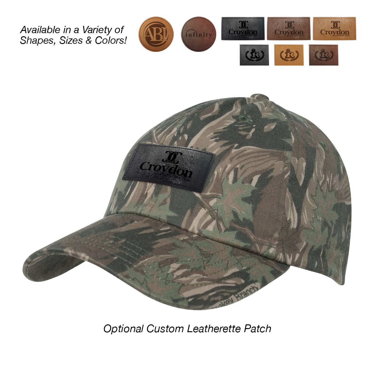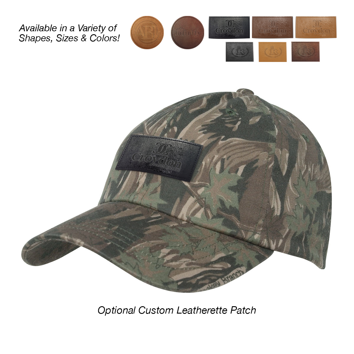 Add to Blank Pricing: Add $100.00(G) set up charge plus $2.50(G) per piece. Patch Shapes: Round, Small Rectangle or Large Rectangle. Patch Colors: Black, Dark Brown or Light Brown. Patch Imprint: Debossed or Laser Engraved. Imprint Area on Patch: Round: 1 ¾" Diameter • Small Rectangle: 1 ¼" W x ¾" H • Large Rectangle: 2 ½" W x 1" H. Must Specify Patch Shape, Color and Imprint Method on PO. Add $50.00(G) to set up charge plus $1.50(G) per piece for Laser Personalization on Patch. Production time is 5-7 days after proof approval. Minimum order is 50 pieces.