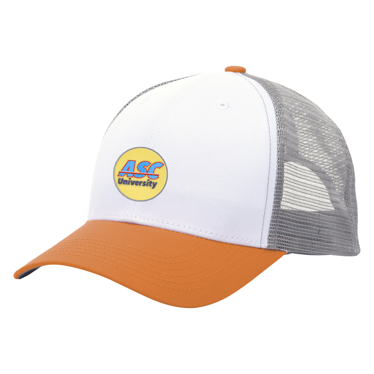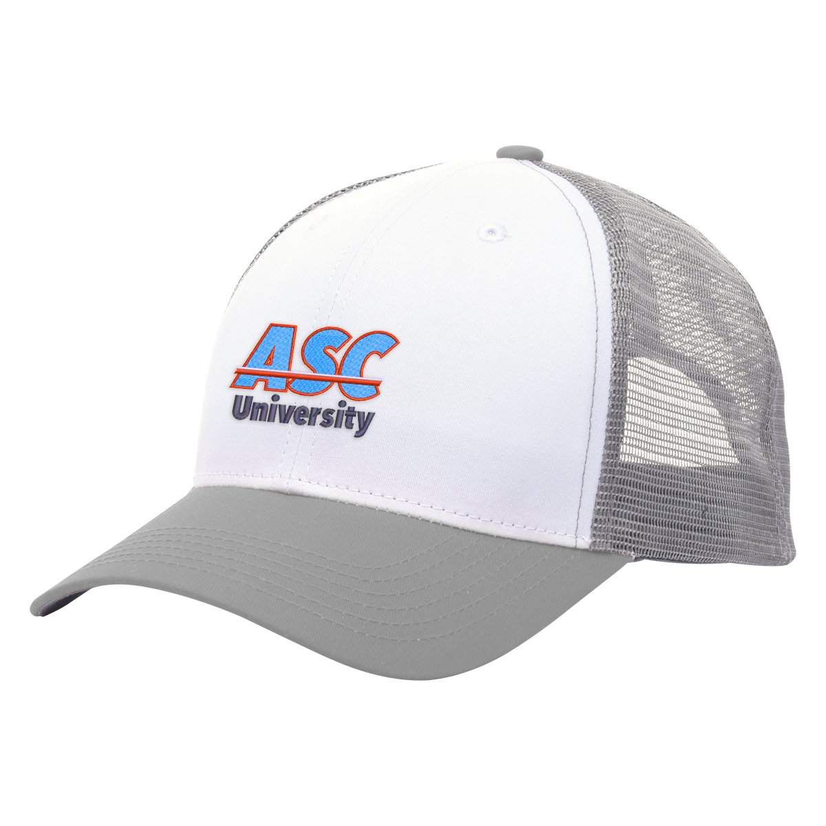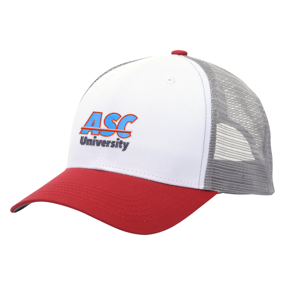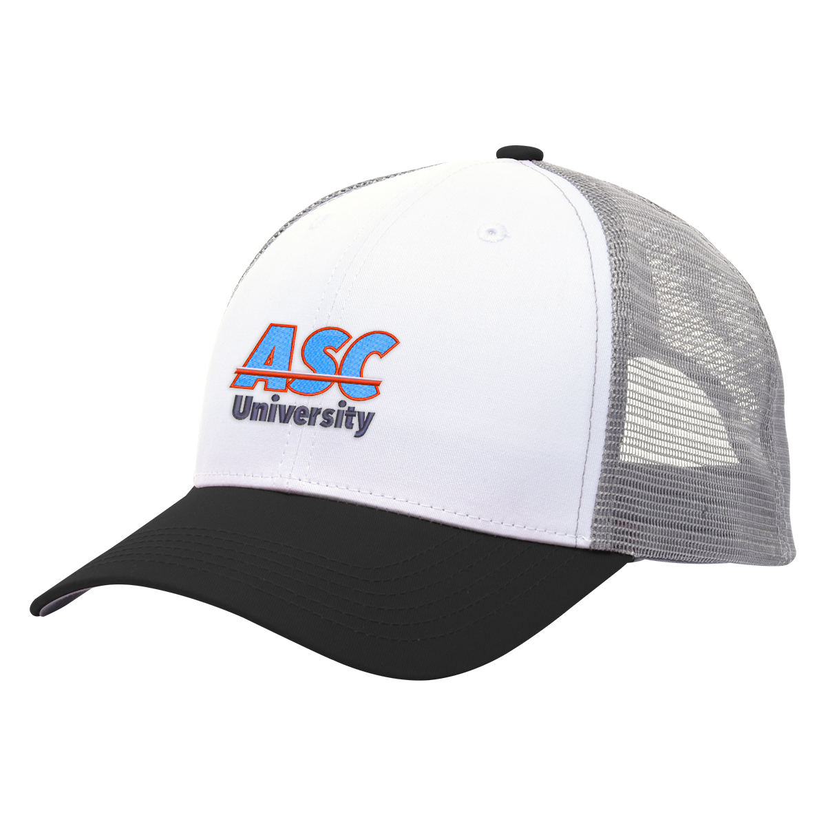 Black, Gray, Green, Navy, Orange, Red or Royal Blue, all with White Crown and Gray Mesh.