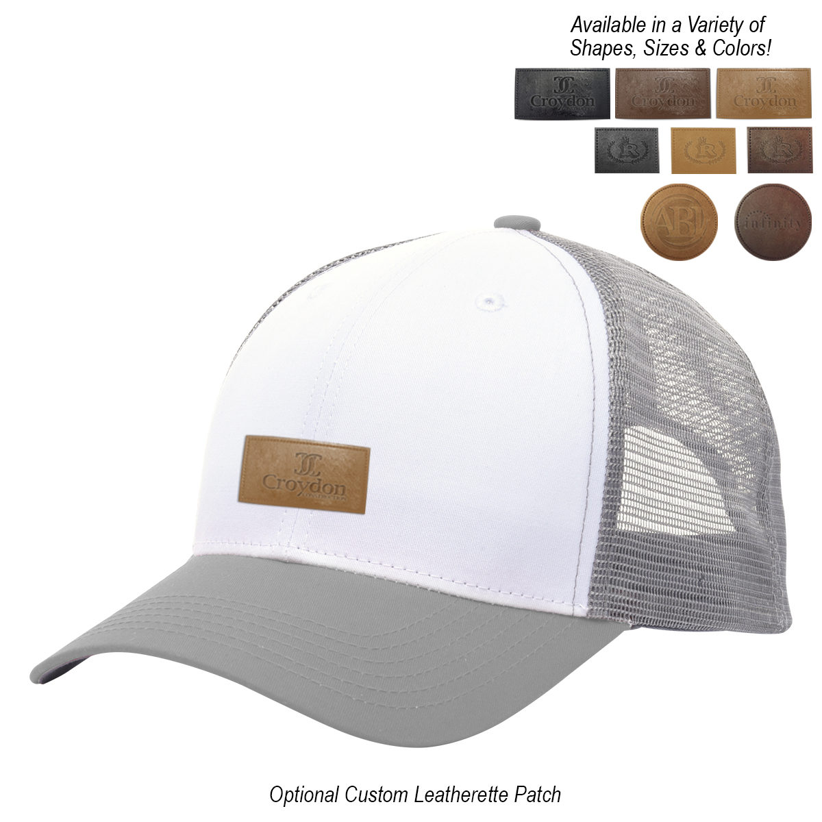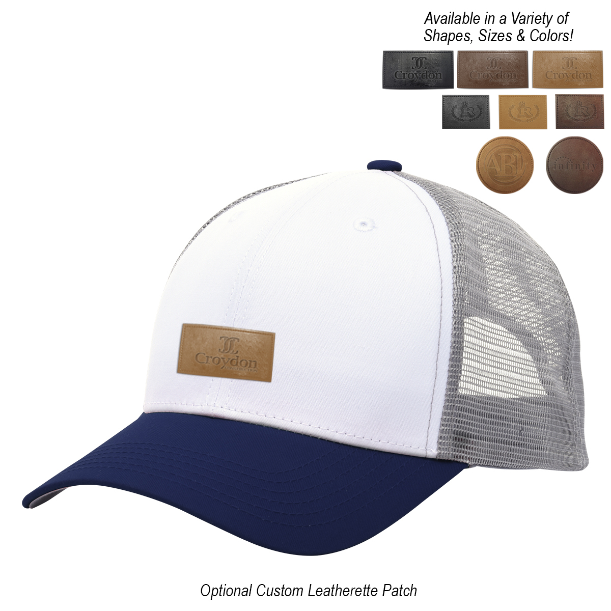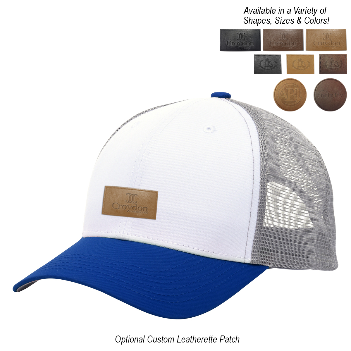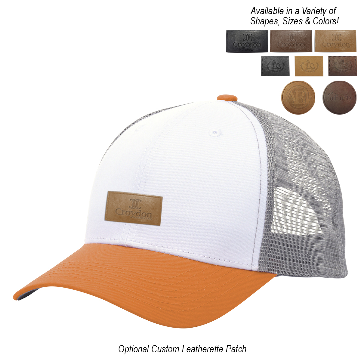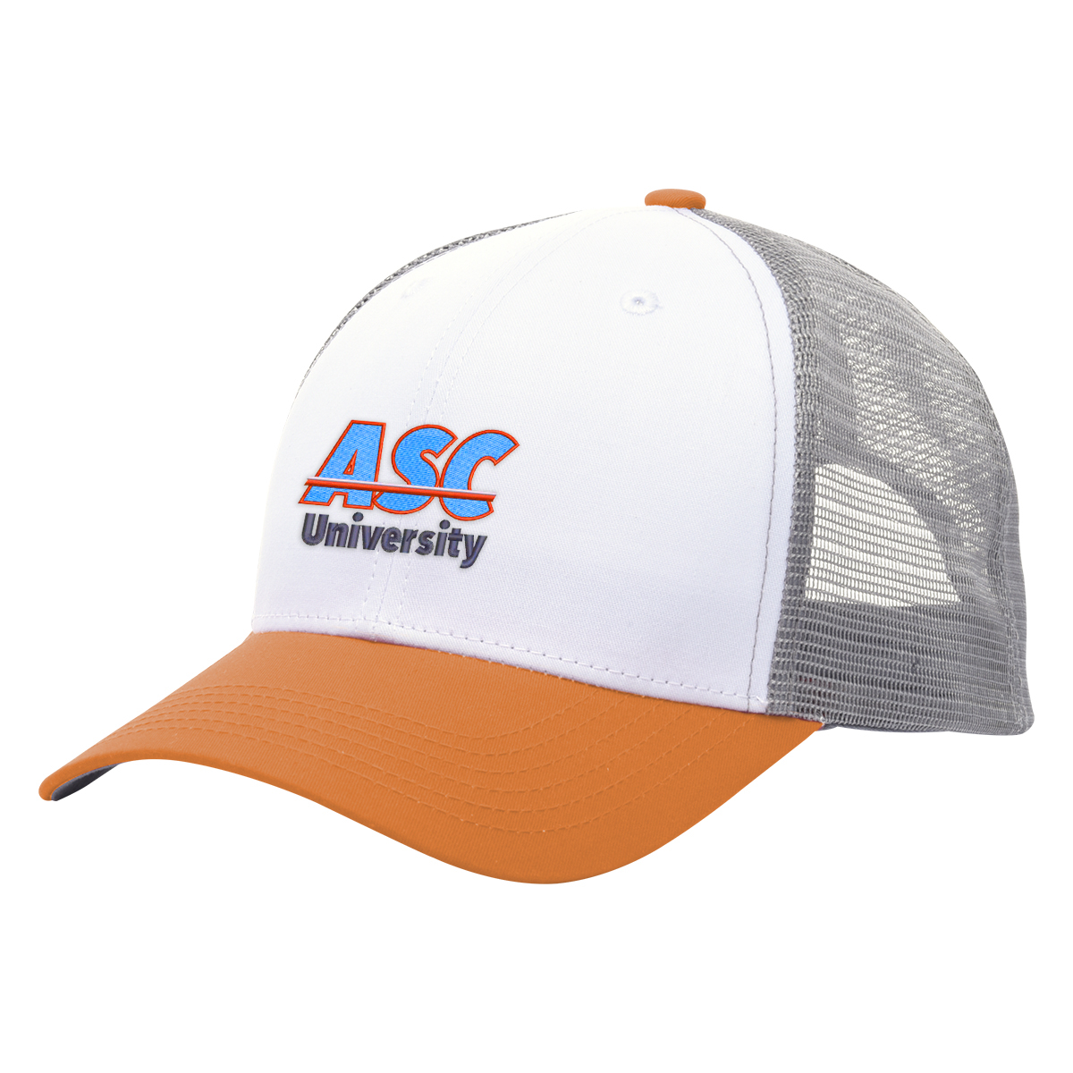 Black, Gray, Green, Navy, Orange, Red or Royal Blue, all with White Crown and Gray Mesh.