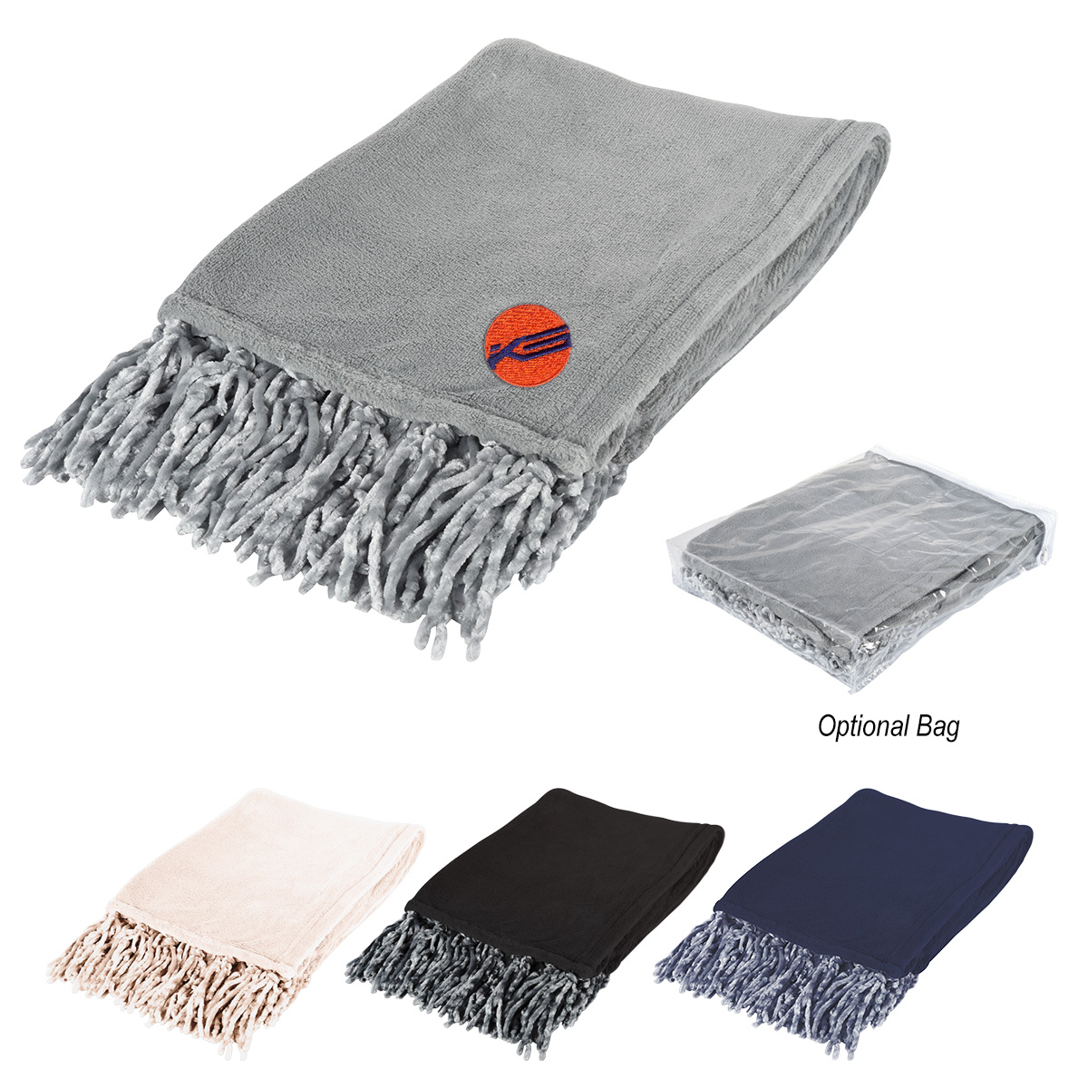 For optional white ribbon with full color custom card: Add $2.89(G) per piece plus $50.00(G) set up charge. Must specify #BLANKETCARD on order. Production Time: 10 days after proof approval. For optional carrying strap: Add .40(G) per piece. To roll blanket add an additional $1.00(G) per piece. For optional storage bag add .95(G) per piece. To insert blanket in bag: Add an additional $1.00(G) per piece. Note: Blankets are shipped bulk, unrolled unless special packaging is requested.
