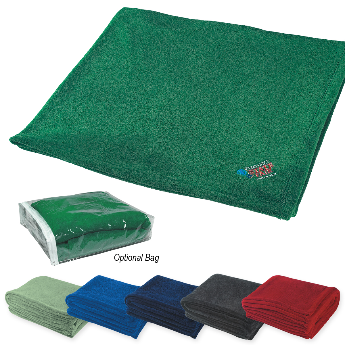 For optional white ribbon with full color custom card: Add $2.89(G) per piece plus $50.00(G) set up charge. Must specify #BLANKETCARD on order. Production Time: 10 days after proof approval. For optional storage bag Add .95(G) per piece. To insert blanket in bag: Add an additional $1.00(G) per piece. Note: Blankets are shipped bulk unless special packaging is requested.