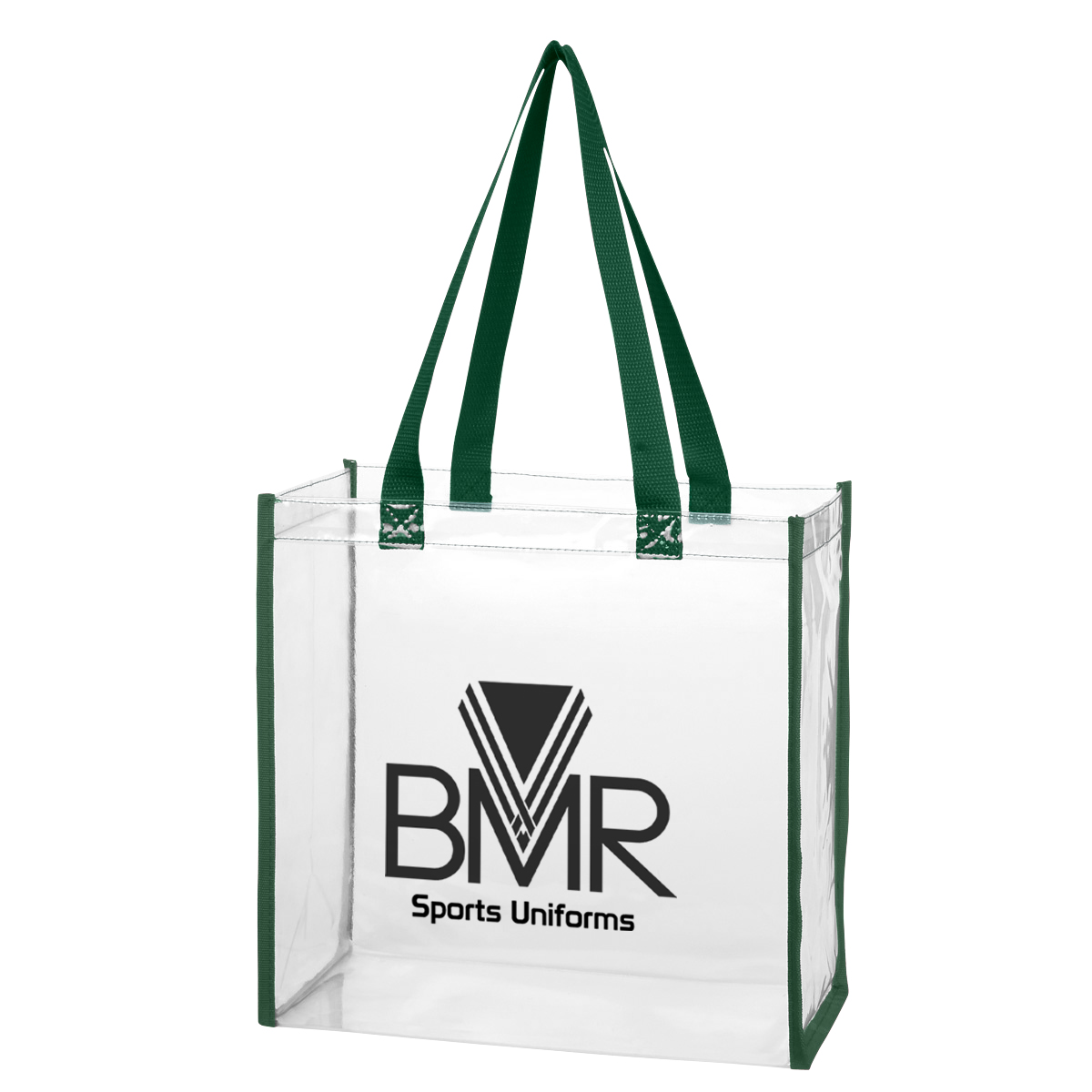 Clear with Black, Forest Green, Maroon, Navy, Orange, Purple, Red or Royal Blue Trim.