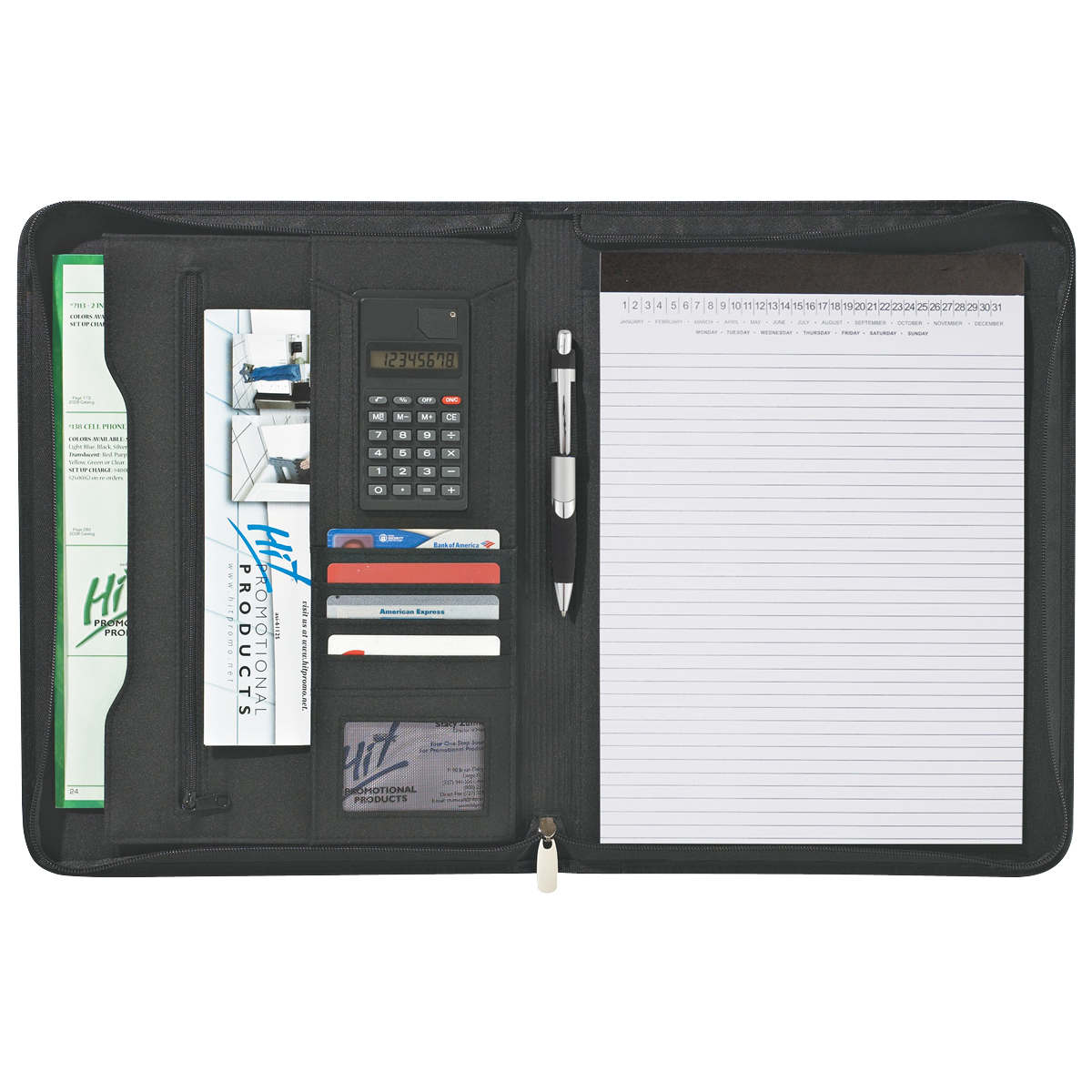 Eclipse Bonded Leather Zippered Portfolio With Calculator