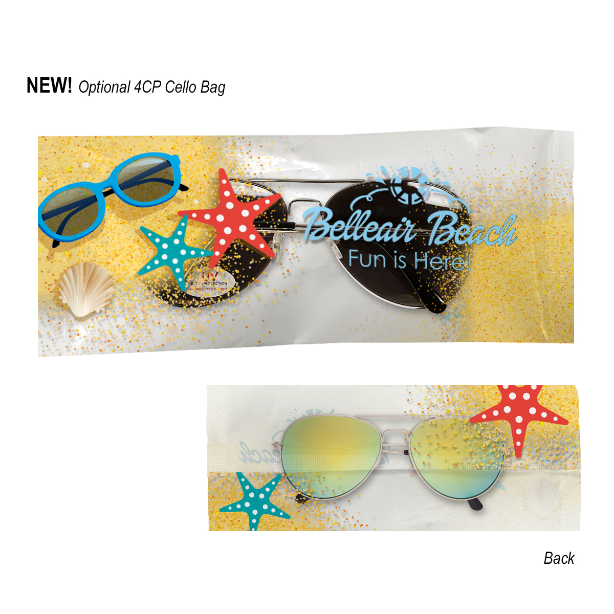 4CP Cello Bag: Add $50.00(G) set up charge plus .30(G) per piece. 4-color process on a white or clear cello bag. Must specify white or clear #4CPCELLO on PO. Choose from one of our stock designs or create your own custom design! 250 piece minimum. Production time for 4-Color Process Cello Bag is 5 to 7 days after proof approval.