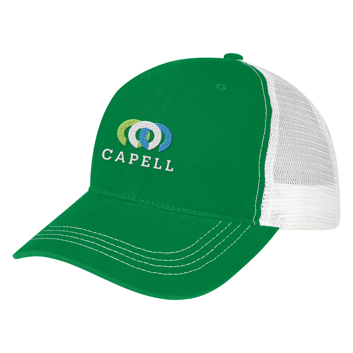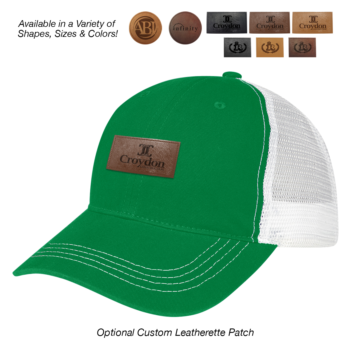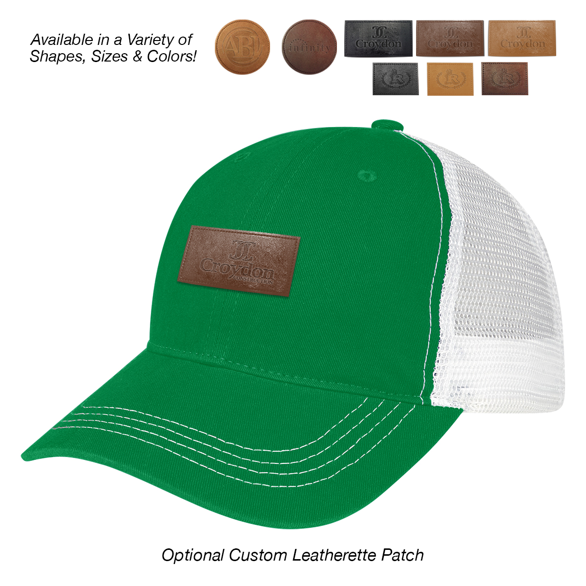 Two-Tone: Black, Kelly Green, Navy, Orange, Purple, Red or Royal Blue, all with White Mesh.