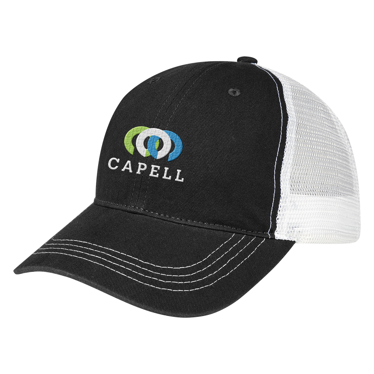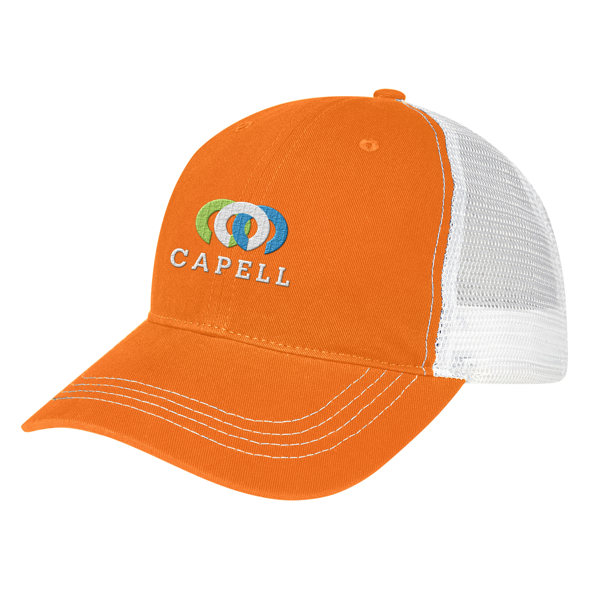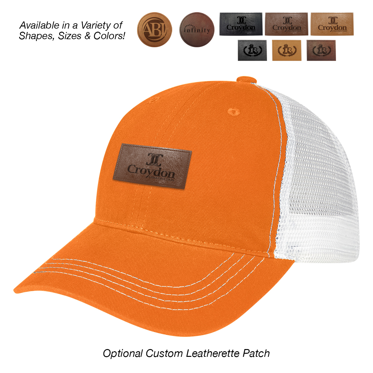 Two-Tone: Black, Kelly Green, Navy, Orange, Purple, Red or Royal Blue, all with White Mesh.