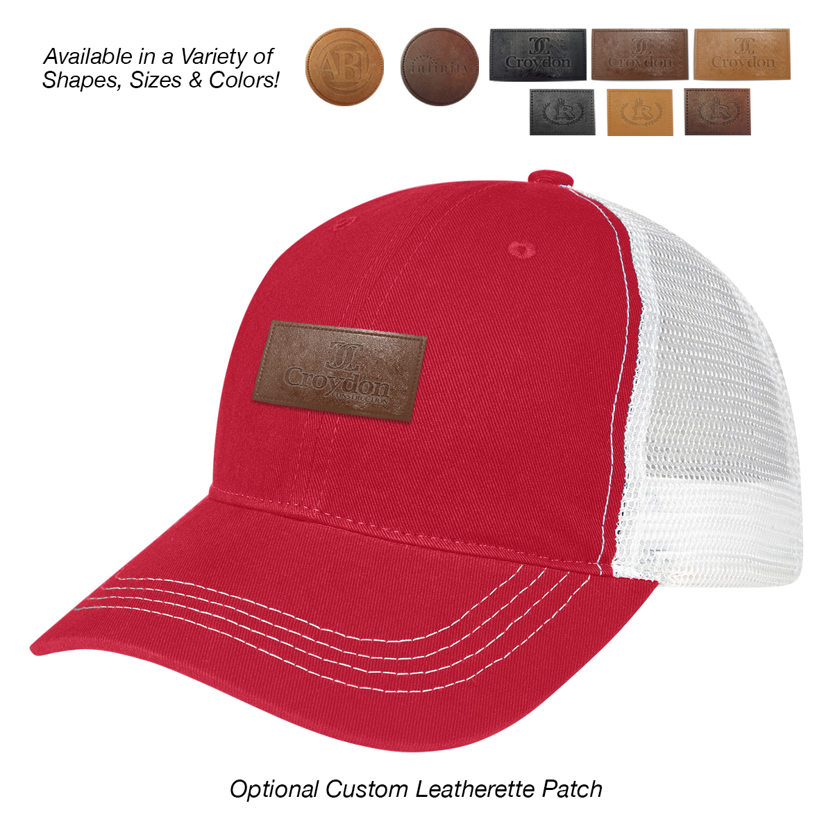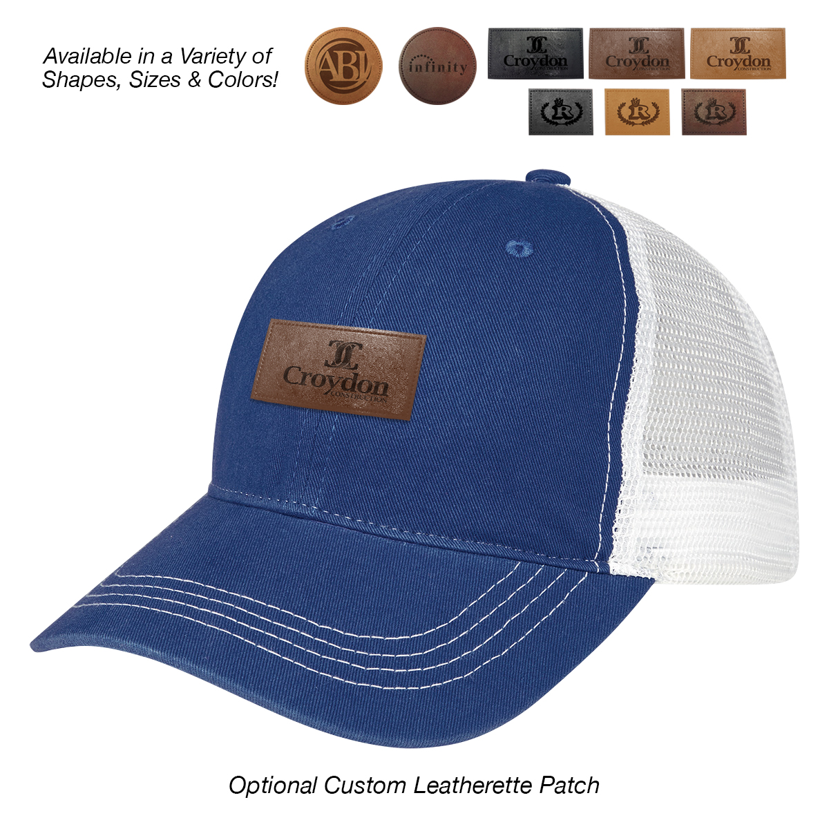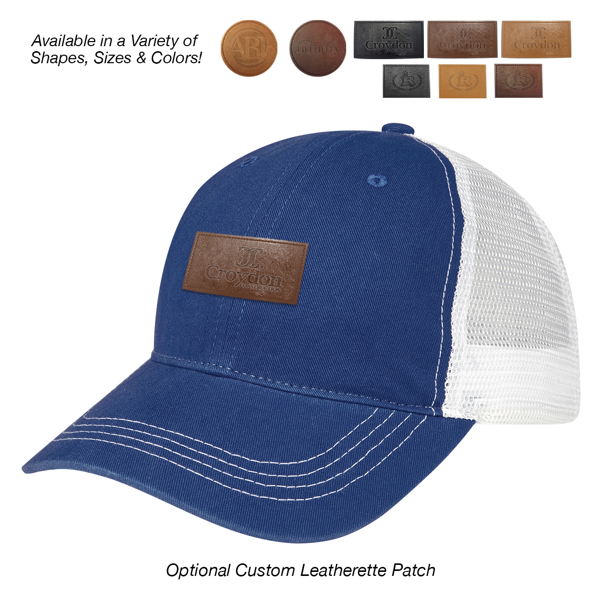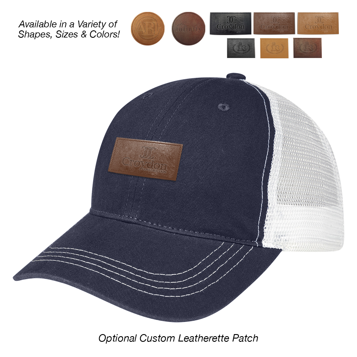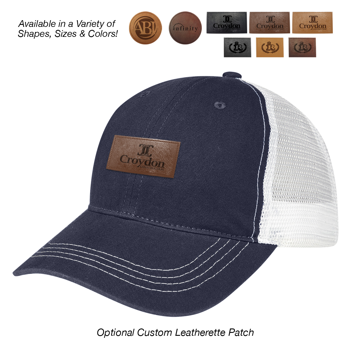 Add to Blank Pricing: Add $100.00(G) set up charge plus $2.50(G) per piece. Patch Shapes: Round, Small Rectangle or Large Rectangle. Patch Colors: Black, Dark Brown or Light Brown. Patch Imprint: Debossed or Laser Engraved. Imprint Area on Patch: Round: 1 ¾" Diameter • Small Rectangle: 1 ¼" W x ¾" H • Large Rectangle: 2 ½" W x 1" H. Must Specify Patch Shape, Color and Imprint Method on PO. Add $50.00(G) to set up charge plus $1.50(G) per piece for Laser Personalization on Patch. Production time is 5-7 days after proof approval. Minimum order is 50 pieces.