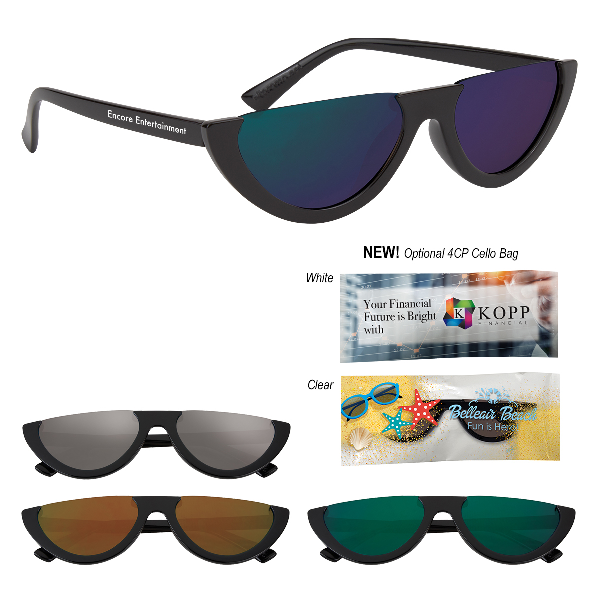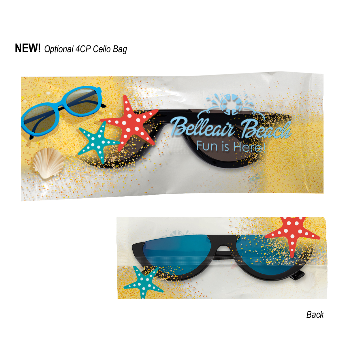 4CP Cello Bag: Add $50.00(G) set up charge plus .30(G) per piece. 4-color process on a white or clear cello bag. Must specify white or clear #4CPCELLO on PO. Choose from one of our stock designs or create your own custom design! 250 piece minimum. Production time for 4-Color Process Cello Bag is 5 to 7 days after proof approval.