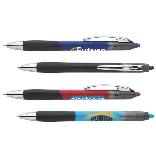 • Black rubber grip and silver clip.