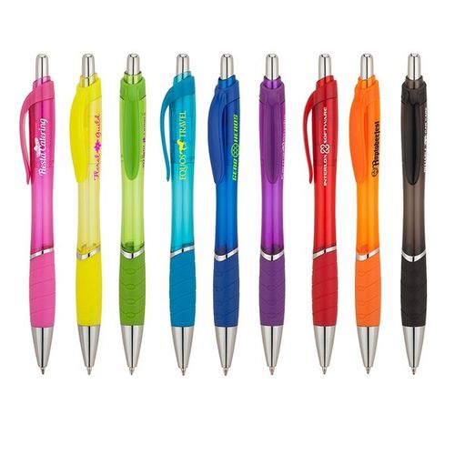 Custom Wave - Clear Ballpoint Pen Design Custom Wave - Clear Ballpoint Pen20 MM wide polyester lanyard allows a wide space for your logo to be printed, These lanyards are idea for your large complex logo. It comes with free metal Bulldog clip with Badge Holder attached.