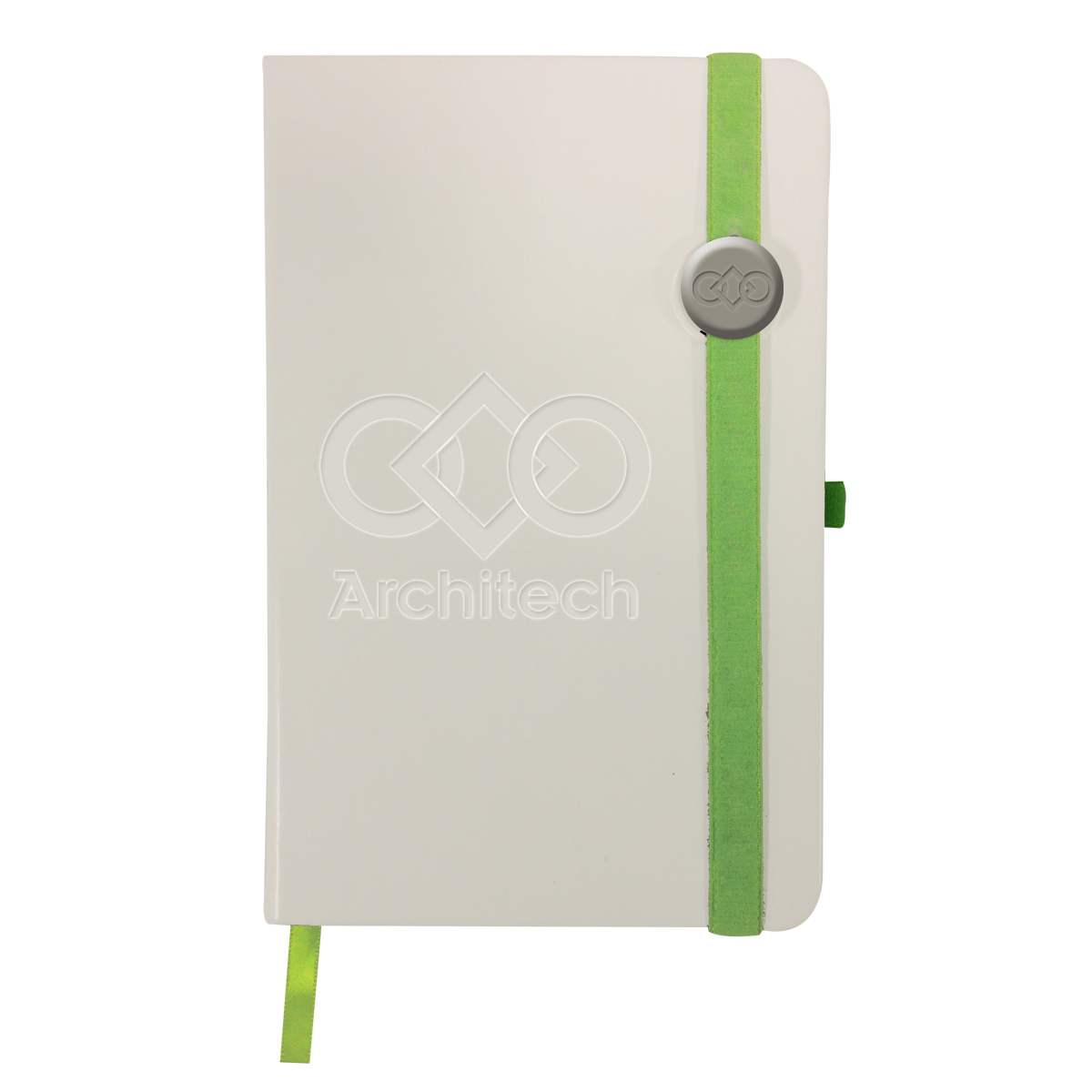 Logo Metal Emblem and Debossed Logo, Front Cover. 1-Color Step and Repeat on Elastic Page Holder.
