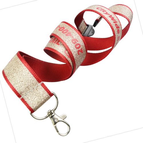 Glitter Lanyard Design Glitter Lanyard20 MM wide polyester lanyard allows a wide space for your logo to be printed, These lanyards are idea for your large complex logo. It comes with free metal Bulldog clip with Badge Holder attached.