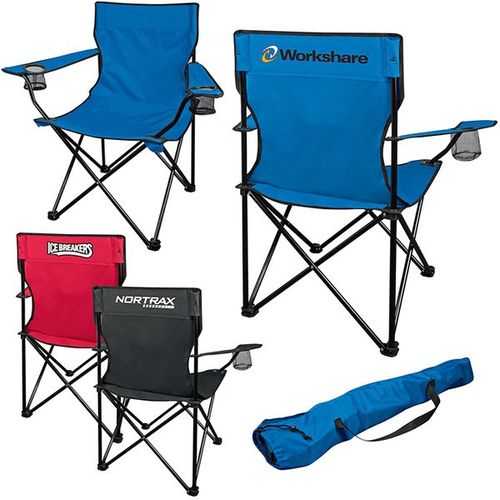 • Durable 600D polyester material chair folds-up and fits into a matching color 210 polyester carry case with convenient shoulder strap. Chair includes: armrests with 2 mesh can holders, Strong steel tube frame that supports up to 250 lbs.