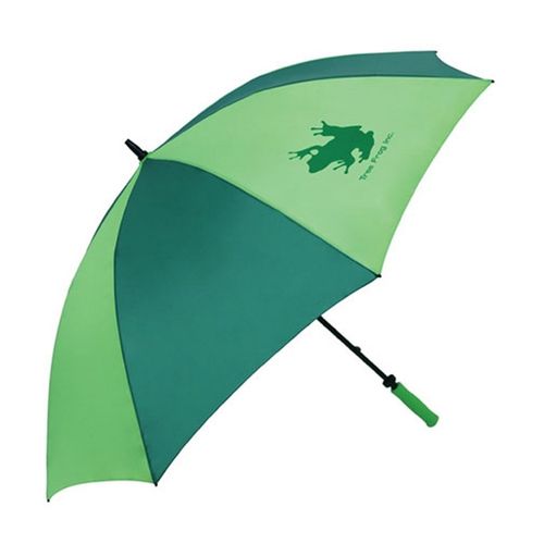 • This durable 210t polyester umbrella is a great way to promote your brand, rain or shine! Fiberglass frame and shaft with EVA handle. Manual open.
