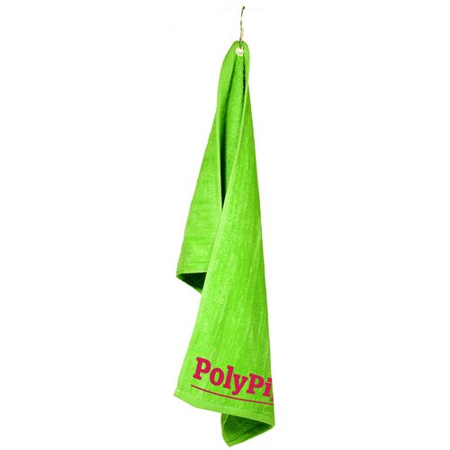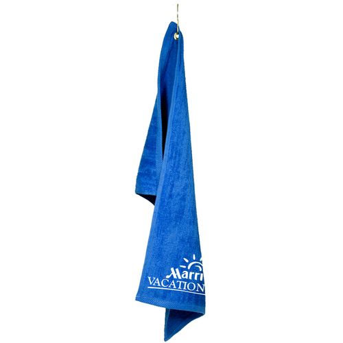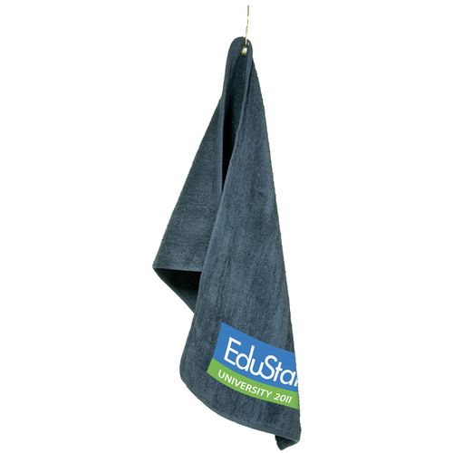 • 100% cotton towel, velour one side, terry loop on other side. Great for golf, country clubs, gyms and fitness centers, as well as bars and restaurants. Hemmed ends. Includes metal grommet and hook. . Standard Packaging - Bulk.
