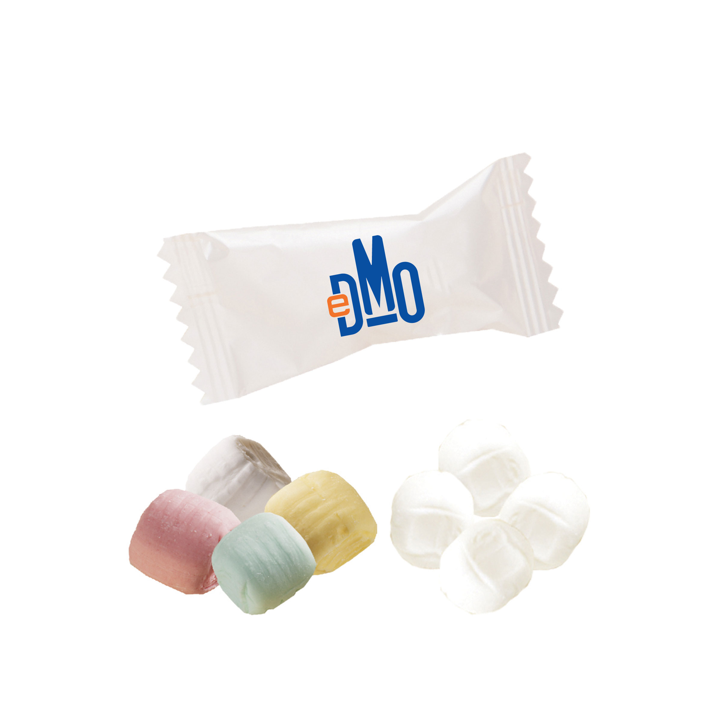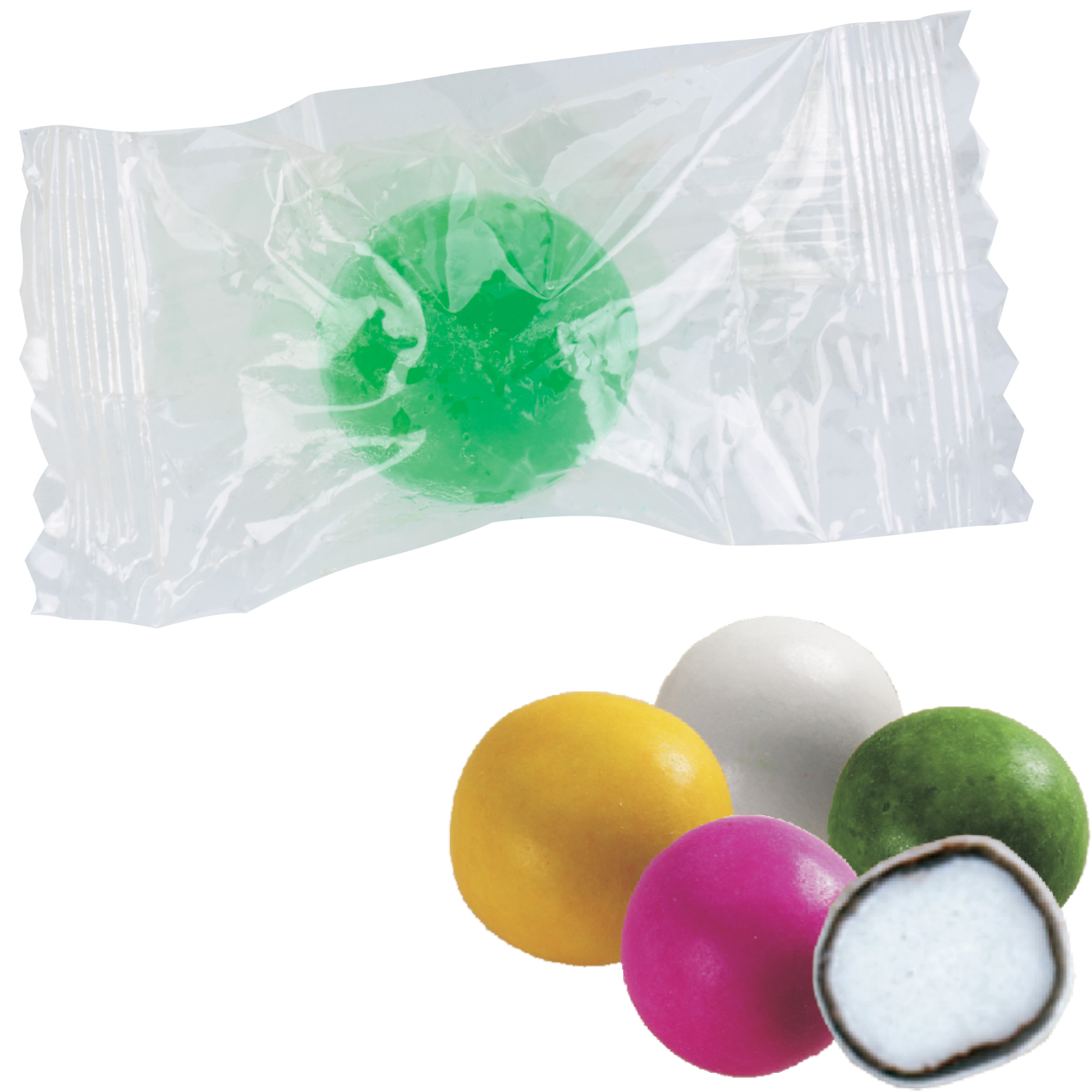 Plate Charge $65(v) per color, Wrappers - wrapper colors other than white or clear $10(v) per case, 10 case minimum. Less than minimum $35(net).Drop Ship Fee - $10(v) per additional location,Less than minimum charge - $60(v) for color wrappers,Change Order Fee - $10(v) per change within an order, such as ink and wrapper color change, flavor change, address change, etc. Ten case minimum - Two or three color imprints & PMS Match Logos. For 5 cases, add $65(V) plate charge per color,Color Match for Wrappers - $10(V) per case. PMS Match may be up to two shades off. We cannot guarantee a perfect match. Minimum 10 cases.Baggin in 50 or 100 - $1(v) per bag.*If you wish to print on a tinted wrapper, the color of the wrapper counts as one color, i.e. yellow wrapper with red ink and black ink equals three colors.