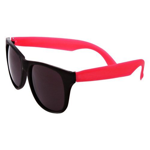 • Black plastic frames with tinted lenses.