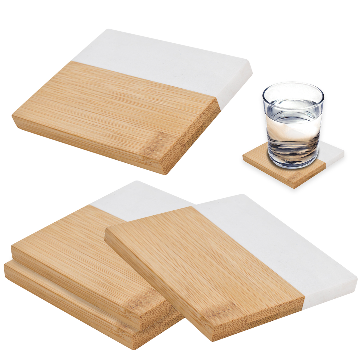 Marble And Bamboo Coaster Set