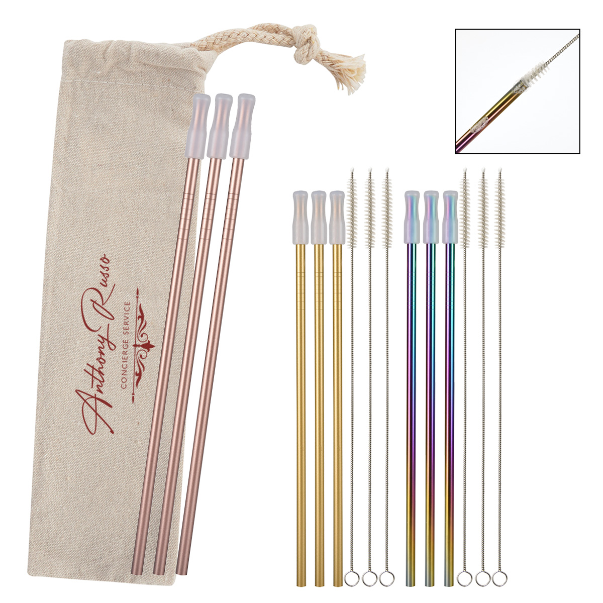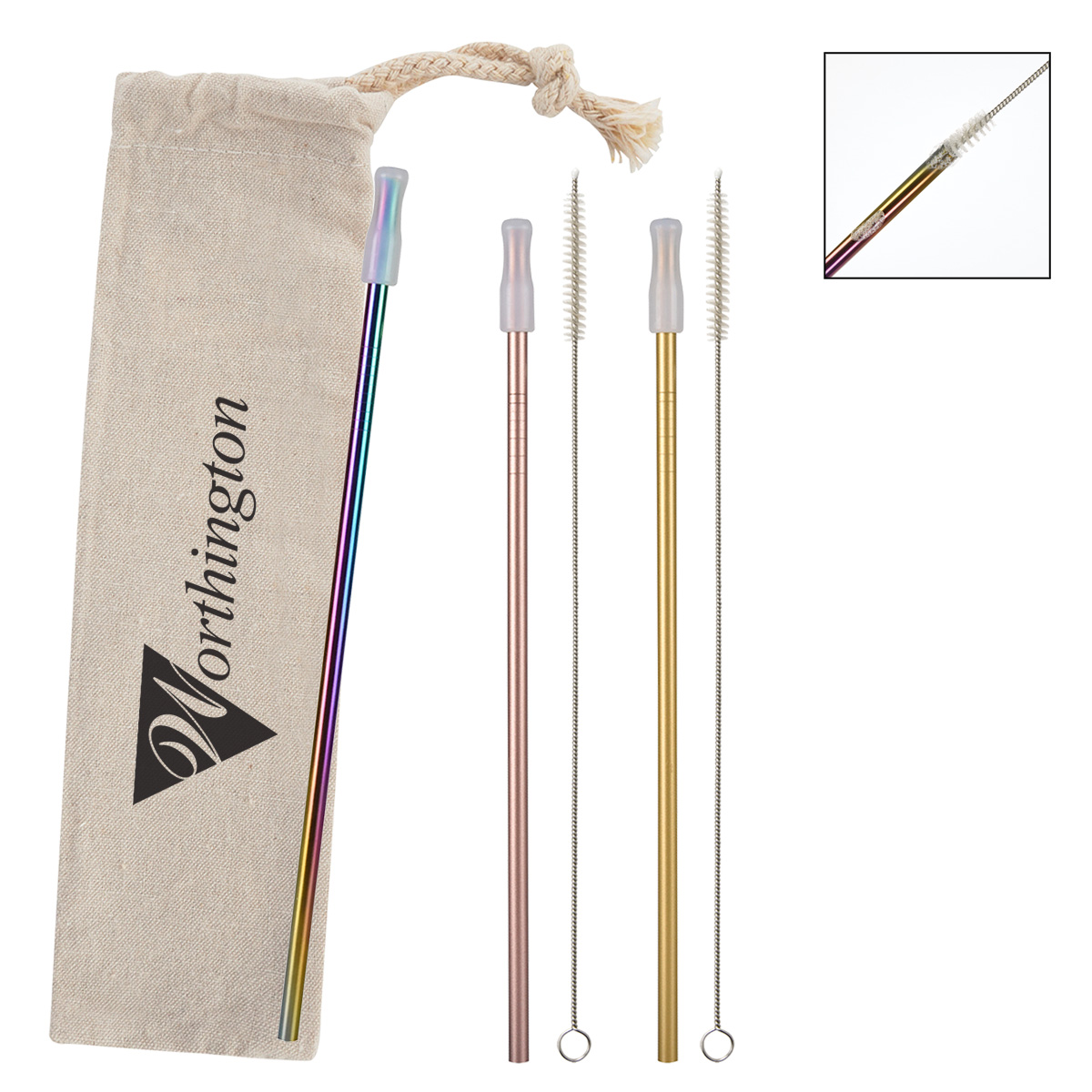 3- Pack Park Avenue Stainless Straw Kit With Cotton Pouch
