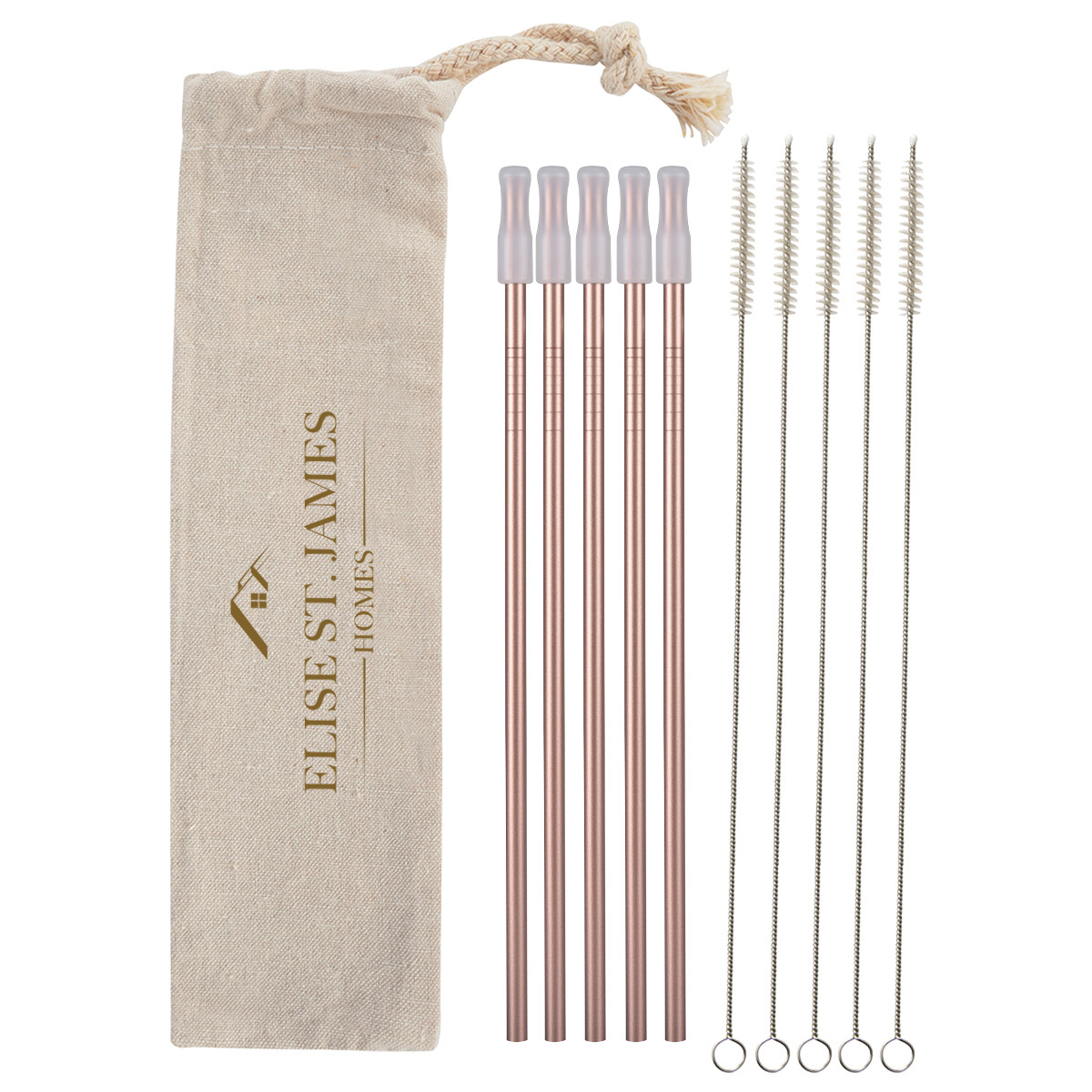 5-pack Stainless Straw Kit With Cotton Pouch