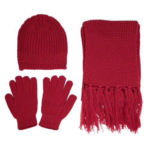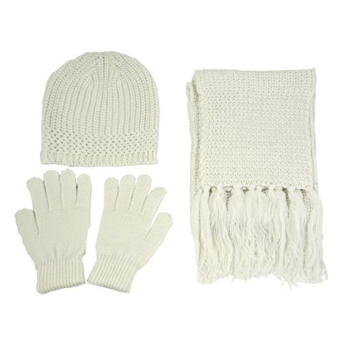 • Recycled beanie, recycled gloves and recycled scarf.
