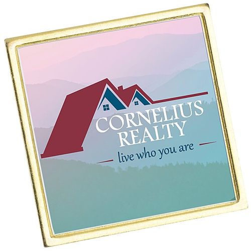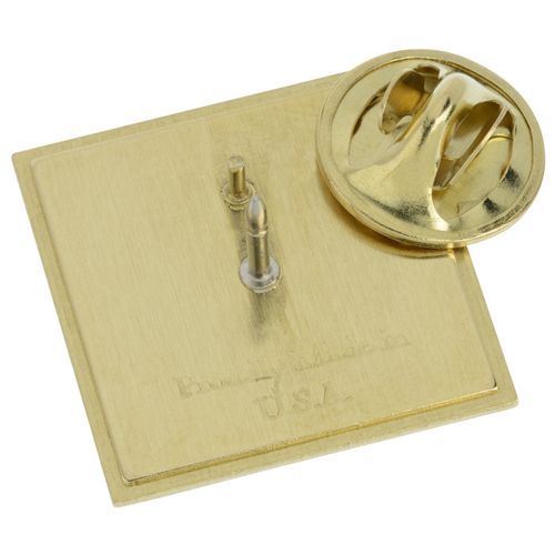 • This small square lapel pin is made of solid brass.