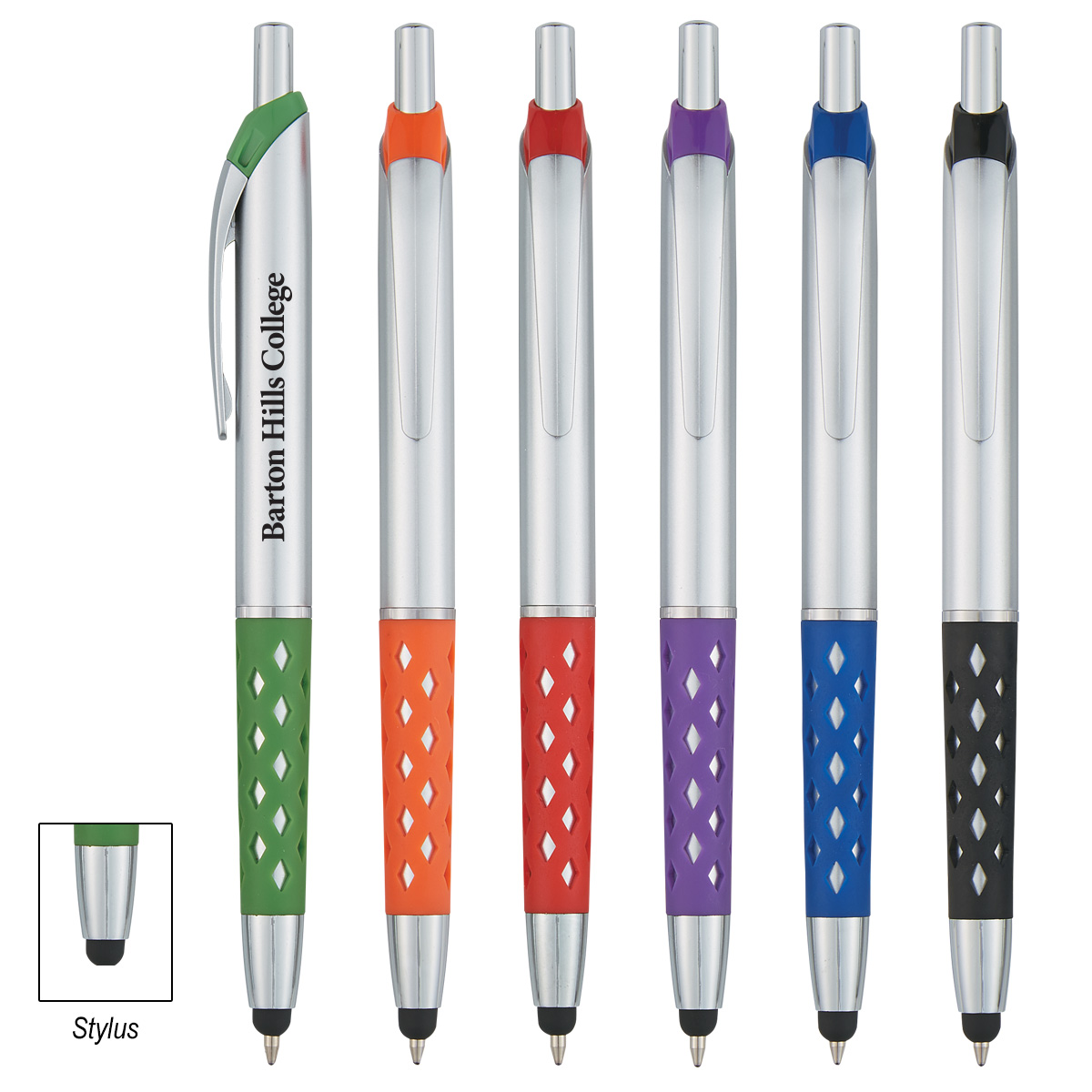 Silver with Black, Blue, Green, Orange, Purple or Red Grip and Trim.