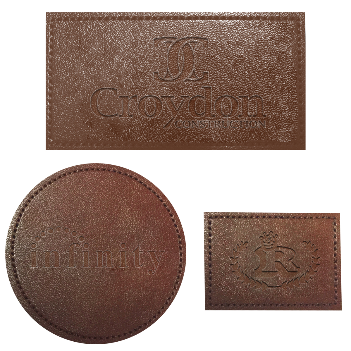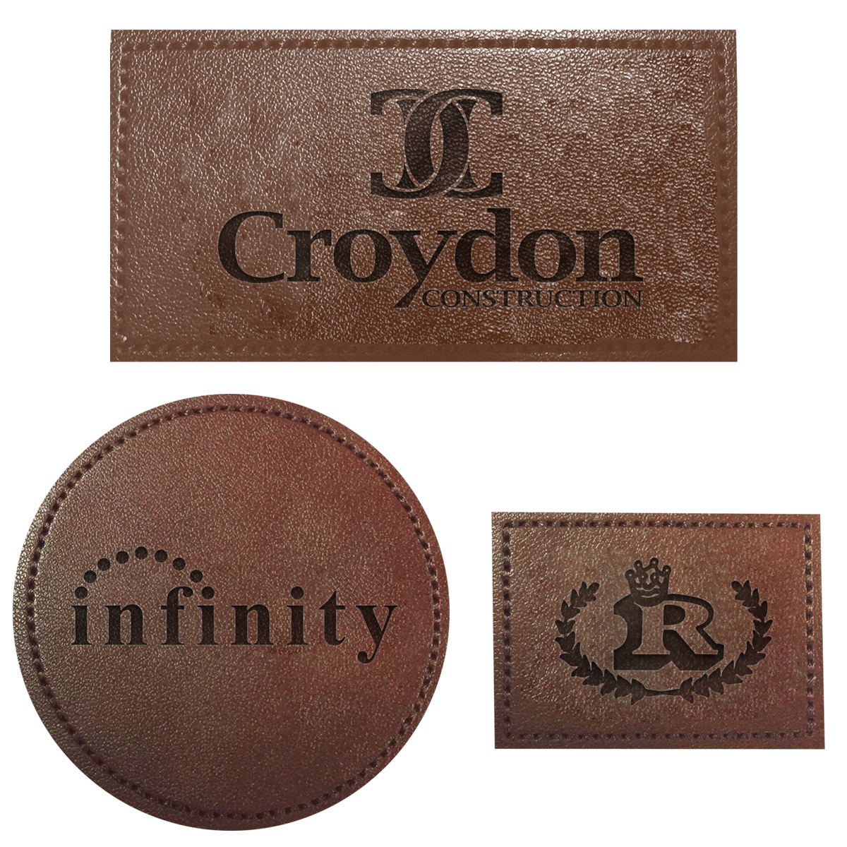 Add to Blank Pricing: Add $100.00(G) set up charge plus $2.50(G) per piece. Patch Shapes: Round, Small Rectangle or Large Rectangle. Patch Colors: Black, Dark Brown or Light Brown. Patch Imprint: Debossed or Laser Engraved. Imprint Area on Patch: Round: 1 ¾" Diameter • Small Rectangle: 1 ¼" W x ¾" H • Large Rectangle: 2 ½" W x 1" H. Must Specify Patch Shape, Color and Imprint Method on PO. Add $50.00(G) to set up charge plus $1.50(G) per piece for Laser Personalization on Patch. Production time is 5-7 days after proof approval. Minimum order is 50 pieces.