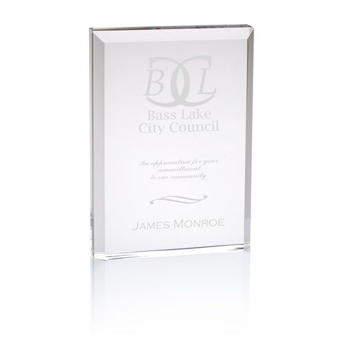 • Clear, rectangular awards feature bevelled edges for an impressive, light-reflecting design.