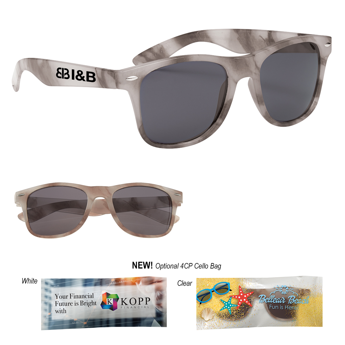 4CP Cello Bag: Add $50.00(G) set up charge plus .30(G) per piece. 4-color process on a white or clear cello bag. Must specify white or clear #4CPCELLO on PO. Choose from one of our stock designs or create your own custom design! 250 piece minimum. Production time for 4-Color Process Cello Bag is 5 to 7 days after proof approval.