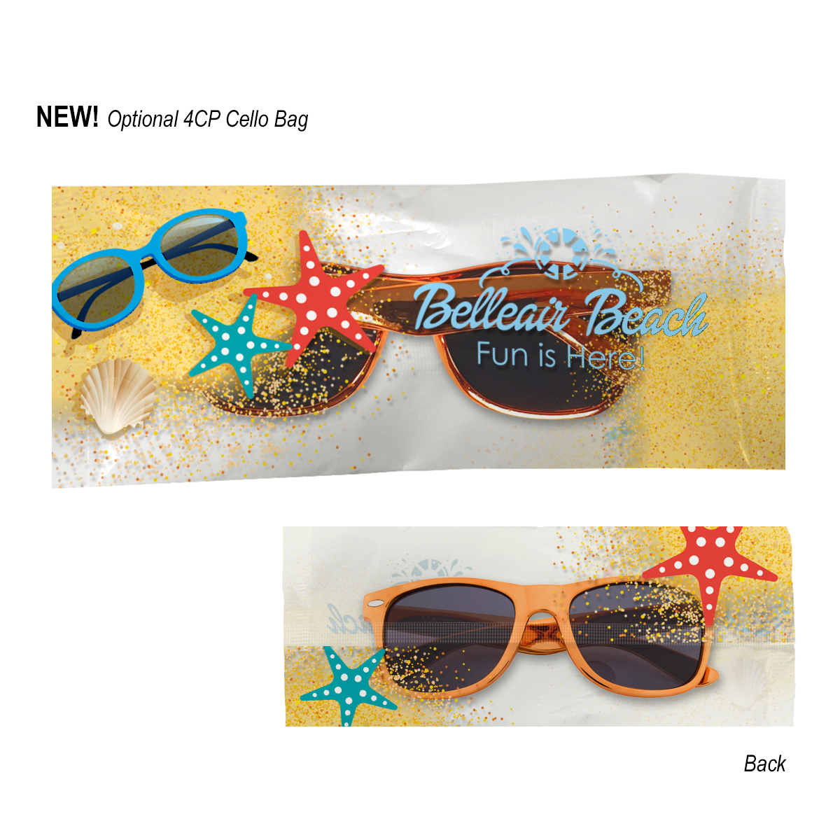 4CP Cello Bag: Add $50.00(G) set up charge plus .30(G) per piece. 4-color process on a white or clear cello bag. Must specify white or clear #4CPCELLO on PO. Choose from one of our stock designs or create your own custom design! 250 piece minimum. Production time for 4-Color Process Cello Bag is 5 to 7 days after proof approval. 4CP Cello Bag: Add $50.00(G) set up charge plus .30(G) per piece. 4-color process on a white or clear cello bag. Must specify white or clear #4CPCELLO on PO. Choose from one of our stock designs or create your own custom design! 250 piece minimum. Production time for 4-Color Process Cello Bag is 5 to 7 days after proof approval.