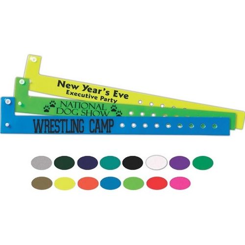 • These wristbands are made of vinyl and feature a narrow style with a convenient snap design.