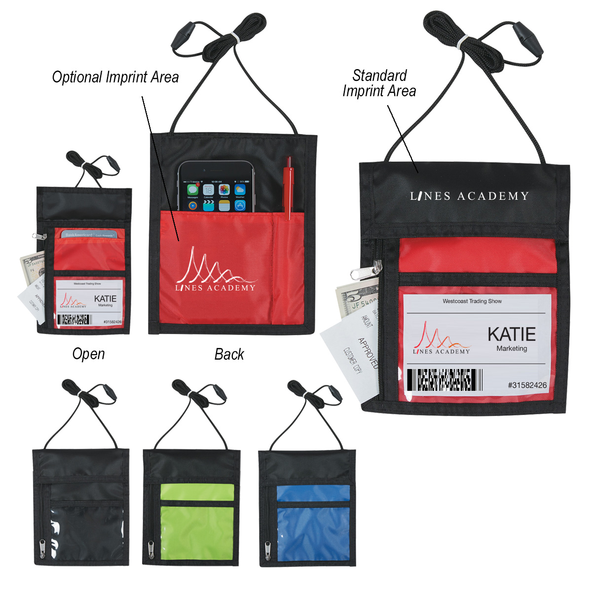 Standard On Front Flap: 3 ½" W x 1" H Optional Imprint On Back Pocket: 2 ½" W x 2 ½" H Standard Imprint Area is the Front Flap. Optional Imprint Area is the Back. Imprint on Standard Location Unless Otherwise Specified on Order. For Printing on Both Positions Add $50.00(G) Set Up Plus .50(G) Per Piece.