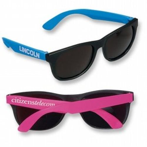 • Get ready for fun in the sun! These promotional sunglasses float in water and feature dark, UV-400 protective lenses.