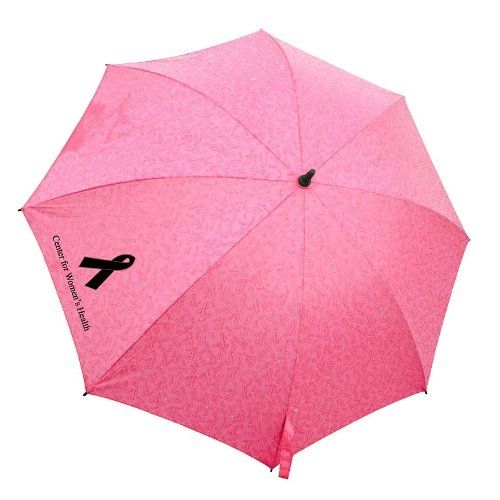 • When rain falls on the outside of this pink umbrella, the breast cancer awareness ribbon "magically" appears all over as a step and repeat, all-over print.