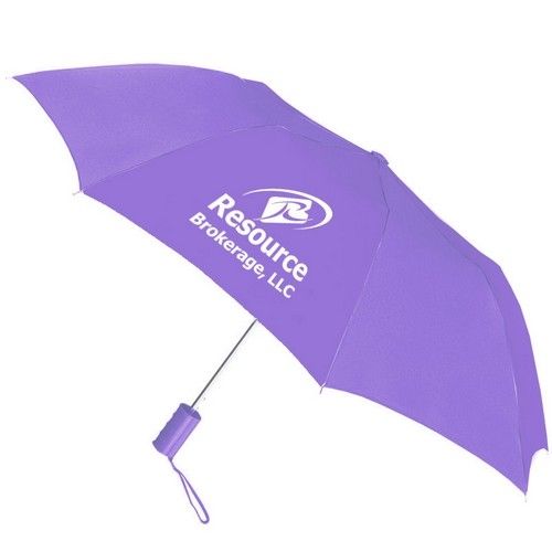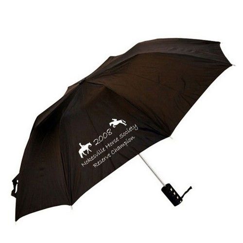 • Automatic open folding umbrella with plastic grip handle and wrist cord.