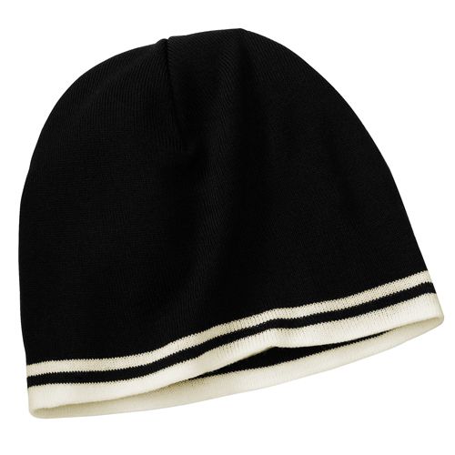 • Made from fine knit fabric, this comfortable cap has contrast stripes to complement a logo.